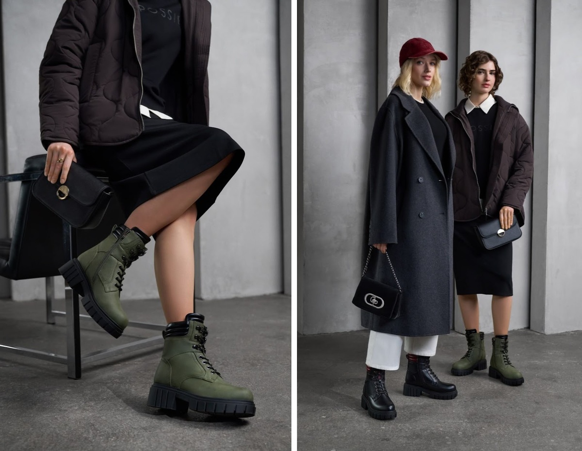 Не исключены неоновые цвета, которые не были представлены Pantone главными за последние как минимум пять лет. Ботинки зеленые из нубука и кожи, арт: W8269576. Сумка кросс-боди черная из экокожи, арт: 105088B0. Пока кто-то строит прогнозы, КАРИ действует смело и предлагает повторить образ с зимними ботинками из мини-коллекции Duotone.