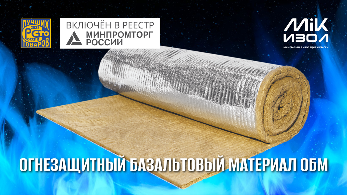 ОБМ — это наше название. Расшифровывается как «огнезащитный базальтовый материал». Мы производим ОБМ с 1992 года, тщательно следим за его качеством и готовы отвечать за каждый метр нашей продукции. В августе 2025 года ОБМ был внесён в Реестр Минпромторга РФ. Это официальное доказательство качества продукции и надёжности производителя. В 2023 году ОБМ стал золотым призёром Всероссийского конкурса «100 лучших товаров России». Мы регулярно получаем положительные отзывы от потребителей. Листайте карусель с фото. ОБМ стал настолько востребован, что теперь мы продаём его на маркетплейсах Ozon, Wildberries, Яндекс Маркет и в известных крупных сетях, таких как «Лемана ПРО», «Петрович», «ВсеИнструменты.ру». У ОБМ очень широкий список применения: теплоизоляция, огнезащита, зв