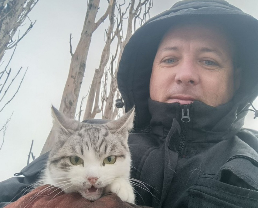 Для спасения кошки с 30-метровой высоты в хуторе Рябичев волонтеры провели спецоперацию с использованием автовышки