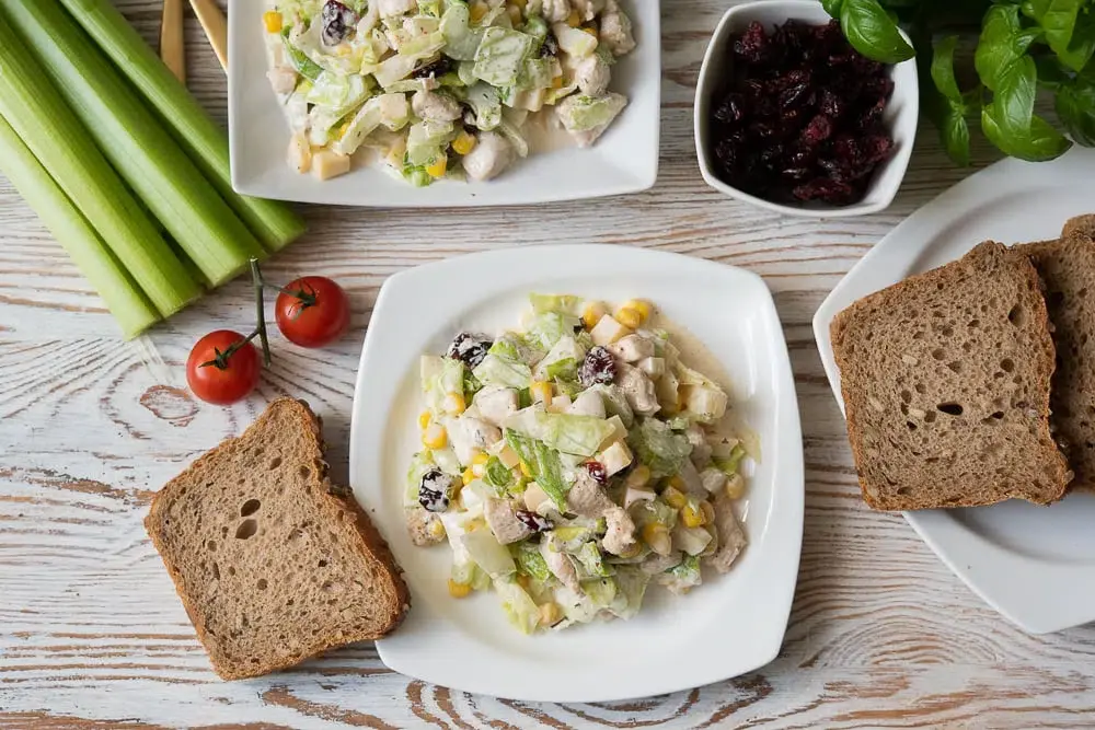 Все еще не решили какой салат готовить на праздник? Присмотритесь к рецептам ниже. Возможно тут есть вариант для вас. 200 гр. куриного филе нарезать кубиками и обжарить на масле с приправами 1 стебель сельдерея соломкой маленькая баночка консервированной кукурузы (2-3 ст. л. из обычной банки) горсть промытого, ошпаренного темного изюма листья салата или пекинская капуста майонез соль, перец приправы для салатов 1 банка любых рыбных консервов в собственном соку или масле (размять вилкой) 2 маринованных огурчик кубиками 3 вареных яйца на терке 1 шт. красного репчатого лука кубиками 100 гр. вареного риса майонез соль, перец 4 филе сельди в масле 4 маринованных огурца среднего размера 2 маленьких сладких яблока 1-2 отварных свеклы 2 столовые ложки майонеза щепотка соли щепотка перца Нарежьте кубиками маринованные огурцы, очищенные яблоки и сельдь. Положите яблоки, сельдь и огурцы в небольшую миску. Добавьте майонез (примерно 2 столовые ложки), щепотку соли и чёрный перец (желательно све