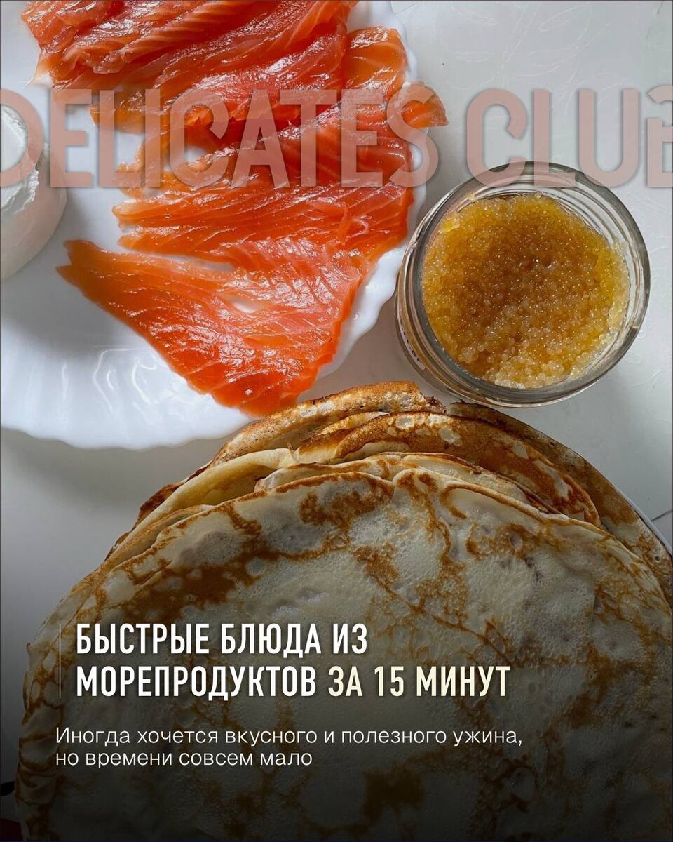 ⏱️ Быстрые блюда из морепродуктов за 15 минут Иногда хочется вкусного и полезного ужина, но времени совсем мало. Морепродукты — идеальный вариант, ведь они готовятся быстро и легко раскрывают свой вкус. 🦪 Классика жанра: попробуйте обжаренные креветки с чесноком и оливковым маслом. Всего 5–7 минут на сковороде — и яркий аромат, насыщенный вкус и красивое блюдо готовы. 🦪 Чуть интереснее: гребешки на гриле или на сковороде, они тоже не займут много времени. Достаточно пары минут с каждой стороны, чтобы получить мягкие и сочные кусочки. 🦪 А для тех, кто следит за калориями — лёгкий салат с лососем слабой соли и свежими овощами можно собрать за считанные минуты. Добавьте немного оливкового масла и лимонного сока — и питательный ужин готов. Ну а чтобы не терять часы в супермаркетах, закажите доставку от Delicates Club — у нас всегда можно купить свежие морепродукты, быстро и надёжно!