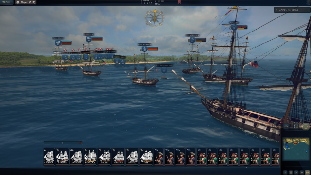 Овладеть искусством манёвра на море — значит выиграть половину сражения. Завладейте наветренным положением и расположите свои корабли так, чтобы ваши залпы были эффективнее, чаще и разрушительнее, чем у противника, — и победа не заставит себя ждать. Мне искренне нравится простота модели ветра. У каждого корабля есть окружность, указывающая силу ветра по заданному направлению компаса: ярко-зелёный цвет означает полный ход, а если вы смотрите на красный, то вполне реальна риск того, что ваши паруса развернутся и пошлют судно назад. Ветер также меняется во время миссий. Мне не удалось выяснить, происходят ли эти изменения случайно или по сценарию. В целом, модель кажется вполне достоверной и работает в данном контексте.
