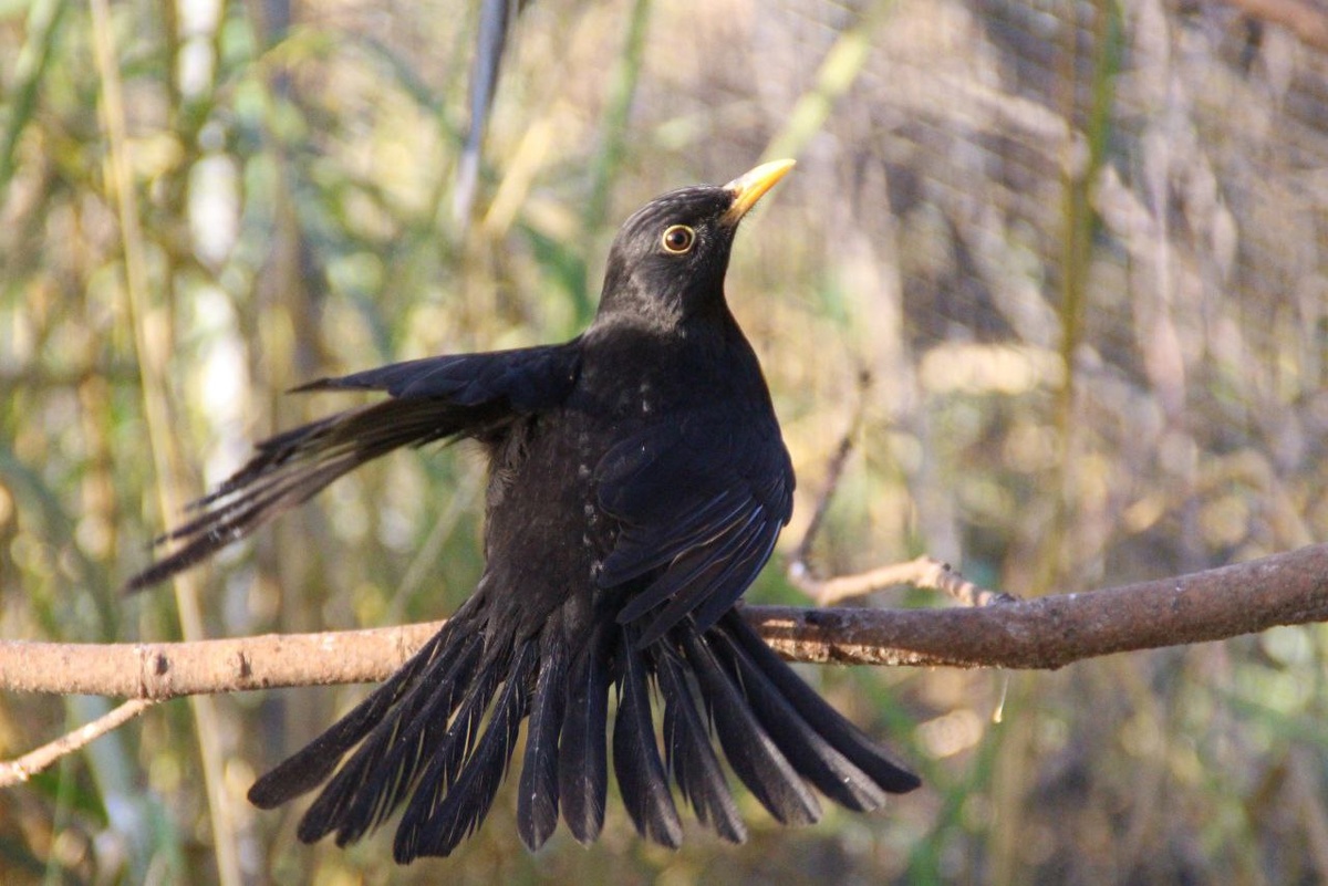 На первых трех фото изображен черный дрозд - элегантная птица с угольным оперением и ярким желтым клювом