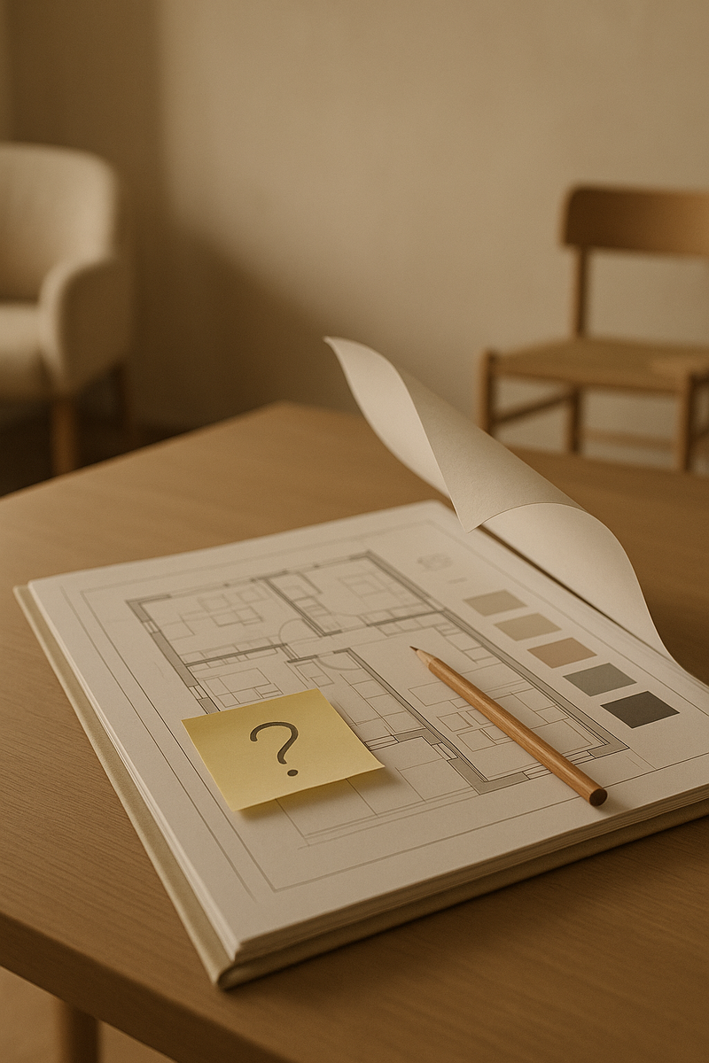 Конечно же, вопрос про желаемый стиль мы тоже не обходим стороной.В 50% случаев люди с удовольствием рассказывают, как много всего им нужно разместитьм(три гардероба, две спальни, отдельная кухня-столовая и, конечно, гостиная в 60 м² — ну да, мы же волшебники).