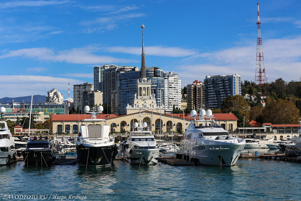 В сочинском морпорту всегда стоит множество белоснежных яхт.