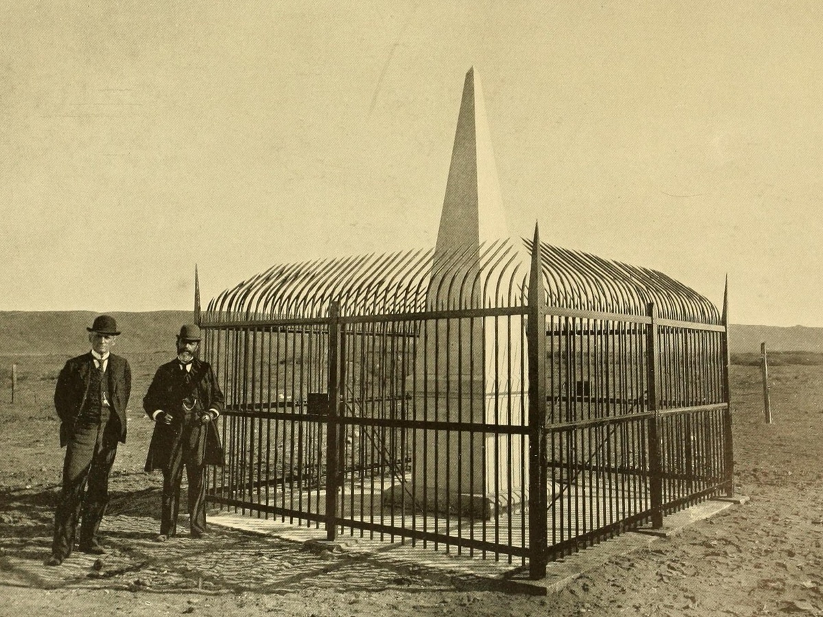 Когда в 1898 году монумент, знаменующий первую точку на границе между США и Мексикой, отмыли, то вокруг него построили забор. Вот он, на снимке из архивов Библиотеки конгресса США. Отмывать мрамор пришлось от матерных слов на испанском, оставленных мексиканцами в адрес американцев. Собственно, забор был поставлен как раз для того, чтобы матерные слова больше не писали. #История_факт