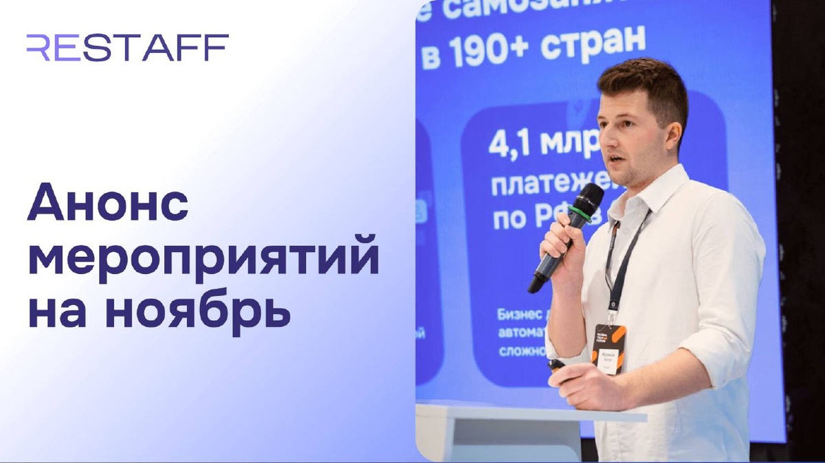 В этом месяце у нас насыщенная программа – мы активно участвуем в событиях, которые важны для бизнеса и HR‑сообщества. Вот, где вы сможете нас встретить: 📍19 ноября – стенд ReStaff на VK HR DAY. 📍20 ноября – выступление ReStaff на «Потоке» – деловая сессия, посвященная новым навыкам и технологиям. 📍28 ноября – участие в HR‑конференции I’M READY в Нижнем Новгороде. Мероприятие пройдет в формате двух потоков: HARD HR и LEADER, с фокусом на управление персоналом в условиях неопределенности. Приходите, на наши выступления и стенды, чтобы узнать: ✅ Как легально сотрудничать с разными форматами исполнителей (самозанятые, ИП, физлица), сохраняя скорость выплаты и минимизируя риски. ✅ Обсудить лучшие практики управления гибкими командами. ✅ Получить возможность лично пообщаться с командой ReStaff и обсудить потенциальные кейсы сотрудничества. Будем рады видеть всех. До скорых встреч!