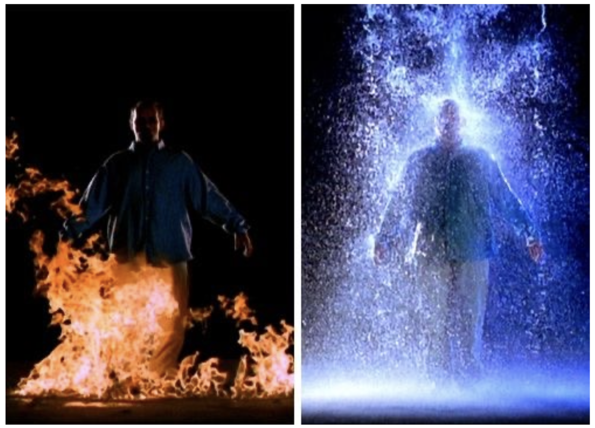 “Огненная женщина” (2005), Билл Виола – мастер видеоперформанса, автор культовых арт-работ 1970-х, 80-х, 90-х и 2000-х годов, Билл Виола исследует экзистенциальные вопросы человеческого существа: что есть жизнь, смерть, одиночество и любовь. Творчество Виолы мультитекстуально – его работы полны отсылок к произведениям прошлого (например, перформанс “Комната Святой Екатерины” (2001) – оммаж на полотно “Житие святой Екатерины Сиенской” Андреа ди Бартоло). “Огненная женщина” – это воплощение страха смерти, эмоционального взрыва. Героиня стояла перед зрителем, а за её спиной, на огромном дисплее, бушевали языки пламени. Похожая то ли на Жанну Д’Арк, то ли на жрицу древнего культа, женщина отчаянно боролась, а после приняла свою участь. Виола показал, как бессильна перед смертью человеческая оболочка. Тело сгорает и не остаётся ни единого шанса на воплощение в этой жизни задуманного и желанного.