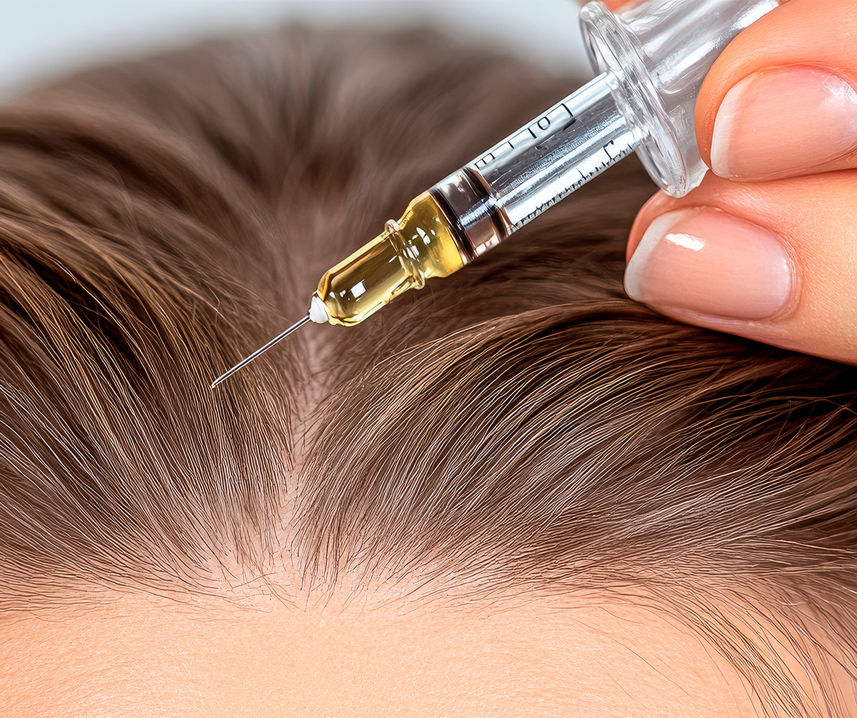 Инъекционные методики в трихологии используются в комплексной терапии для восстановления густоты волос. Мезотерапия кожи головы — метод внутрикожного введения различных мезотерапевтических коктейлей методом микроинъекций: пептидов, факторов роста и других компонентов для улучшения состояния кожи, уменьшения выпадения и стимуляции роста волос. Карбокситерапия — введение медицинского углекислого газа в волосистую часть кожи головы. Активизирует микрососуды, улучшает кровоток и кислородообмен, оказывая противовоспалительное, противоотечное и регенерационное действие. Применяется в программах для снижения выпадения и восстановления густоты волос. Озонотерапия — эпидермальное введение кислородно-озоновой смеси. Обладает противовоспалительным, иммуностимулирующим и антибактериальным эффектом, улучшает местное кровообращение и регенеративные процессы. Способствует росту волос за счет улучшения состояния кожи. PRP-терапия — внутрикожное введение обогащенной тромбоцитами собственной плазмы. Тро