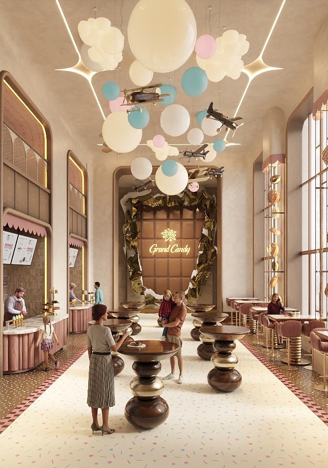 GRAND CANDY в Ереване мы изначально задумывали не как «ещё один магазин десертов», а как эмоциональное пространство. Место, где взрослые на несколько минут снова чувствуют себя детьми, а обычная покупка пончика или мороженого превращается в небольшое приключение. Наша ключевая идея: магазин как сладкая фантазия, ожившая в реальности.