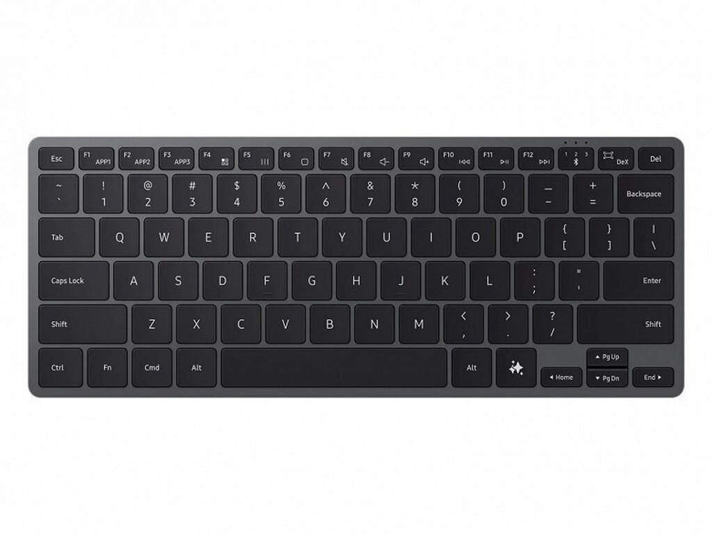 Samsung представила новую Smart Keyboard — компактную и стильную Bluetooth-клавиатуру, которая идеально подходит для работы с разными устройствами: смартфонами, планшетами и ПК. Корпус выполнен из прочного алюминия, что придаёт устройству современный и премиальный вид. Несмотря на отсутствие подсветки, клавиатура удобна в использовании благодаря продуманной эргономике. Особенностью Smart Keyboard стала кнопка быстрого переключения между тремя подключёнными устройствами — теперь можно легко работать с несколькими гаджетами без необходимости переподключения. Ещё одна уникальная функция — отдельная клавиша для запуска искусственного интеллекта: на устройствах Samsung Galaxy она активирует голосовых помощников Bixby или Google Gemini, а при работе с Windows — Microsoft Copilot. Для пользователей Samsung DeX предусмотрена отдельная кнопка быстрого запуска этой платформы. Размеры клавиатуры — 280×116×4,3 мм, вес — всего 218 граммов, что делает её удобной для переноски и использования в до