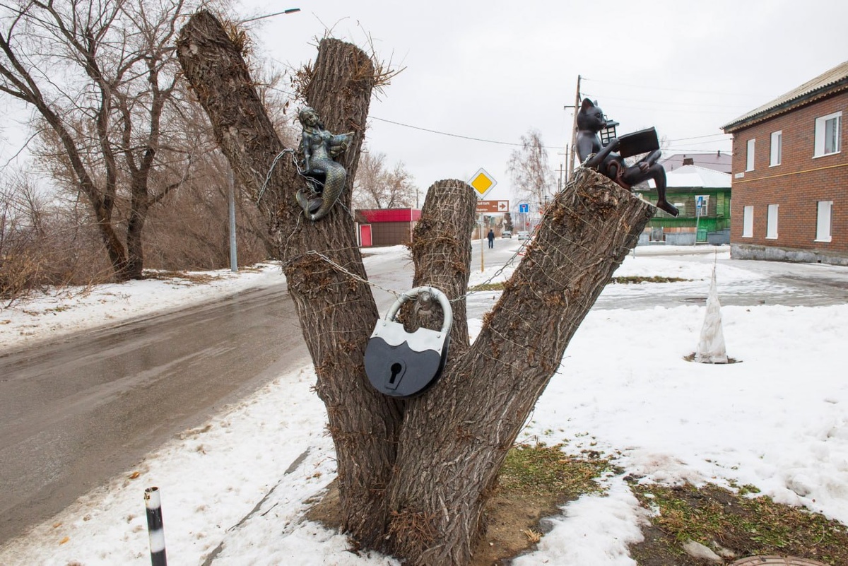 Смотрите, кто поселился на барнаульской Горе. Кот ученый и русалка! Отдыхают.