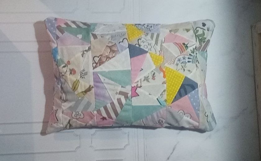 Вы тоже любите пэчворк? Сегодня хочу поделиться с вами вот такой наволочкой на подушку для дивана в стиле пэчворк-треугольники. Техника очень простая: нарезаем ткань на квадраты одинакового размера. Размер может быть любым, чем меньше тем пестрее будет ваше изделие. Затем каждый квадрат разрезать на пополам и сшить половинки разных цветов. Далее каждый квадрат разрезаем поперек на два больших треугольника. Затем можно сразу сшивать наволочку, либо как в моем случае, разделить треугольник еще раз и получить более мелкие детали. Но мне показалось и этого недостаточно, я вырезала из больших треугольников маленькие равносторонние треугольники по пластиковому трафарету. Теперь самое интересное – собрать треугольники в большой прямоугольник, из которого мы и сошьем наволочку. На готовом изделии с боку я вшила потайную молнию. Получилась яркая симпатичная вещица, которая впишется в любой интерьер. Я собирала треугольники хаотично и до последнего не знала, какой в итоге получится ри