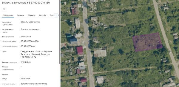 Название: Земельный участок с кадастровым номером 66:37:0203010:166, общей площадью 1466,00 кв.м., категория земель – земли населенных
