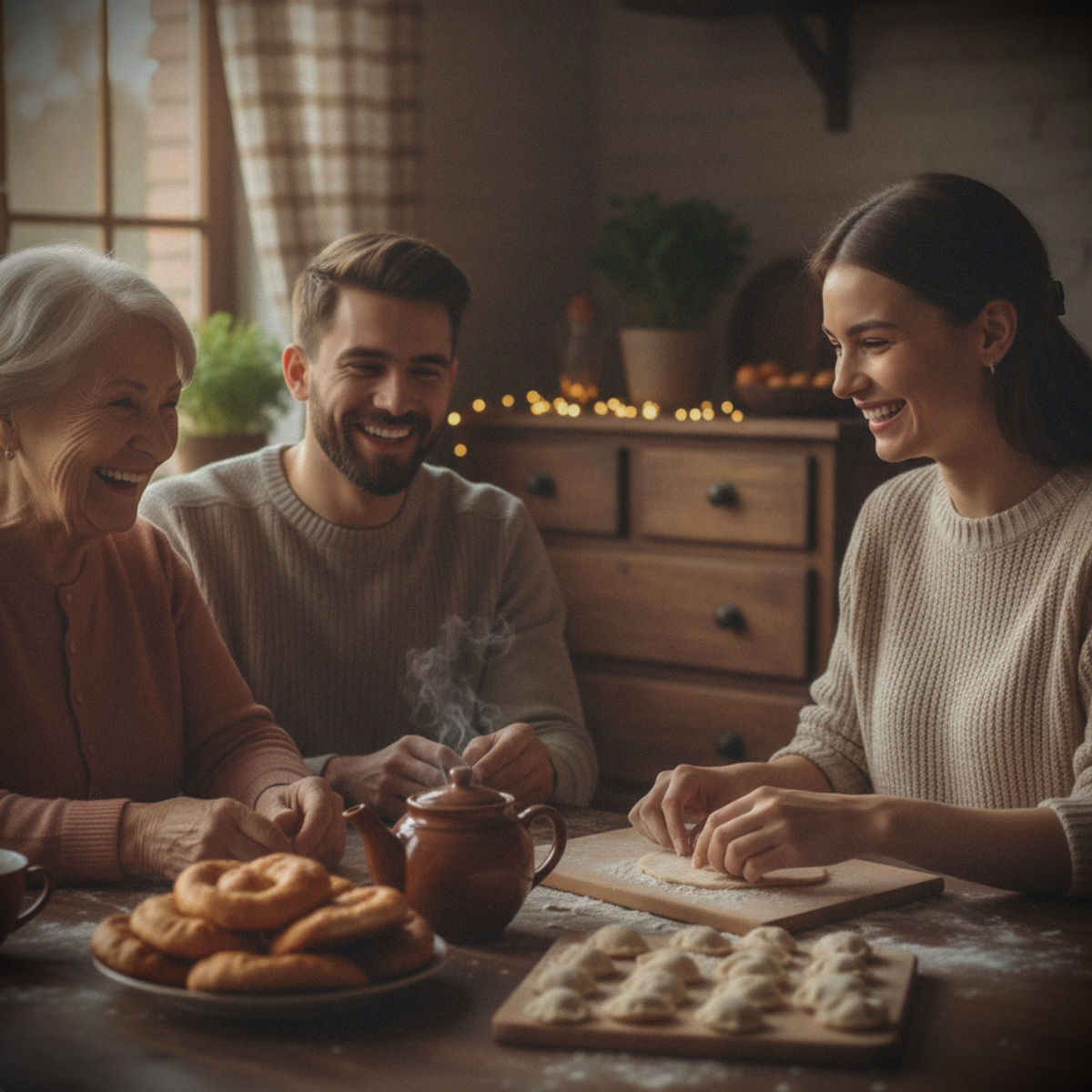 Все трое захохотали одновременно. На кухне пахло курицей, укропом и домашним уютом. За окном медленно падал первый снег.