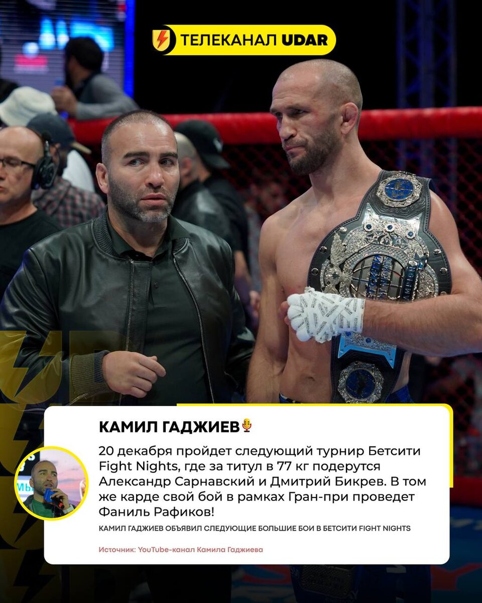 π₯ ΠΠ»Π΅ΠΊΡΠ°Π½Π΄Ρ Π‘Π°ΡΠ½Π°Π²ΡΠΊΠΈΠΉ vs ΠΠΌΠΈΡΡΠΈΠΉ ΠΠΈΠΊΡΠ΅Π² β Π±ΠΎΠΉ Π·Π° ΡΠΈΡΡΠ» ΡΠ΅ΠΌΠΏΠΈΠΎΠ½Π° ΠΠ΅ΡΡΠΈΡΠΈ Fight Nights Π² 77 ΠΊΠ³! ποΈΠΡΠΎΡ Π±ΠΎΠΉ ΠΎΡΠΈΡΠΈΠ°Π»ΡΠ½ΠΎ ΠΎΠ±ΡΡΠ²ΠΈΠ» Π³Π»Π°Π²Π° Fight Nights, ΠΠ°ΠΌΠΈΠ» ΠΠ°Π΄ΠΆΠΈΠ΅Π². Π ΡΡΠΎΠΌ ΠΆΠ΅ ΠΊΠ°ΡΠ΄Π΅ ΡΠ²ΠΎΠΉ ΠΏΠ΅ΡΠ²ΡΠΉ Π±ΠΎΠΉ ΠΡΠ°Π½-ΠΏΡΠΈ Π² ΠΊΠ°ΡΠ΅Π³ΠΎΡΠΈΠΈ Π΄ΠΎ 77 ΠΊΠ³ ΠΏΡΠΎΠ²Π΅Π΄Π΅Ρ Π€Π°Π½ΠΈΠ»Ρ Π Π°ΡΠΈΠΊΠΎΠ². ΠΡΠΈ ΠΈ Π΄ΡΡΠ³ΠΈΠ΅ Π±ΠΎΠΈ ΠΊΠ°ΡΠ΄Π° β ΡΠΎΠ»ΡΠΊΠΎ Π² ΠΏΡΡΠΌΠΎΠΌ ΡΡΠΈΡΠ΅ ΡΠ΅Π»Π΅ΠΊΠ°Π½Π°Π»Π° UDAR 20 Π΄Π΅ΠΊΠ°Π±ΡΡ! πΠΠΎΠ΄Π΄Π΅ΡΠΆΠΈ Π½Π°Ρ ΠΊΠ°Π½Π°Π» cΠ²ΠΎΠΈΠΌ Π³ΠΎΠ»ΠΎΡΠΎΠΌ πΊΠ‘ΠΌΠΎΡΡΠΈΠΌ Π±ΠΎΠΈ Π² ΠΏΡΡΠΌΠΎΠΌ ΡΡΠΈΡΠ΅ β‘οΈ @teleudar