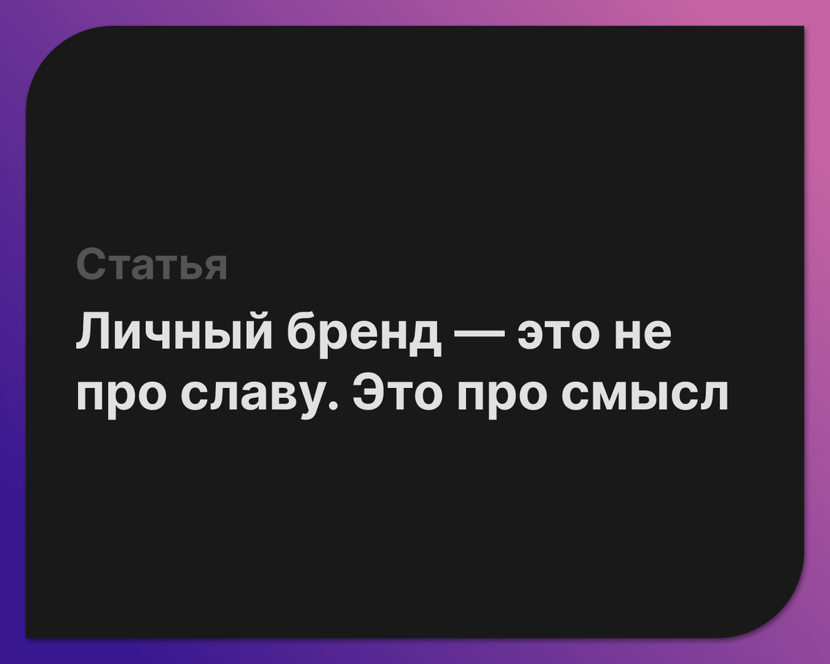 Без ответов на эти вопросы вы быстро начнёте работать «на одобрение» — на лайки, комментарии, реакции. А это путь к выгоранию. Личный бренд, построенный на внешней мотивации, не выдерживает времени. Он рассыпается при первом же провале или тираже с нулевым откликом.