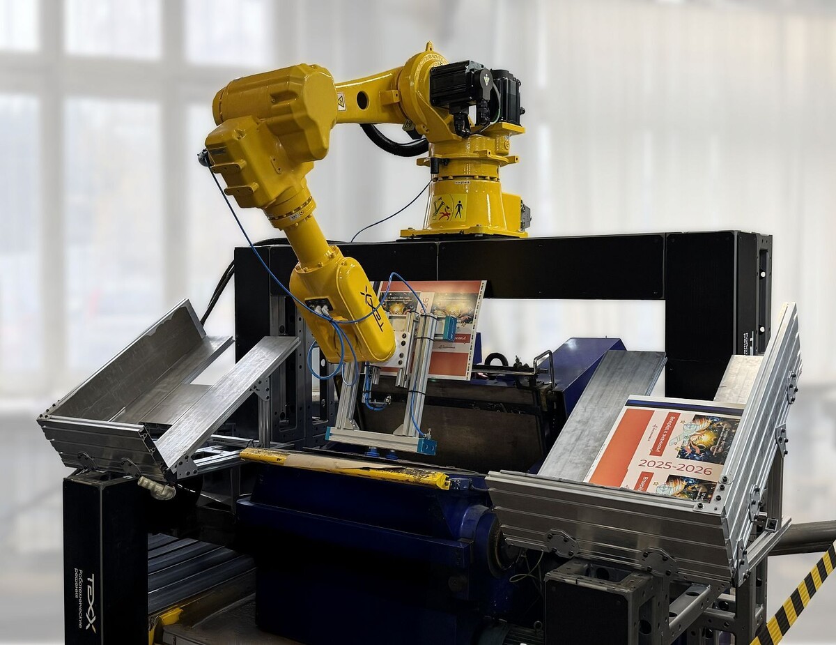 «РТ-Техприемка», входящая в госкорпорацию Ростех, разработала роботизированный комплекс для автоматизации процессов в полиграфической отрасли. Система внедрена в «Щербинской типографии» и предназначена для работы с тигельным прессом. Комплекс способен захватывать и перемещать заготовки различных форм и размеров. Он автоматизирует подачу переплетного, однослойного и многослойного картона, а также гофрокартона, и выгружает готовую продукцию. Система работает в постоянном такте, обеспечивая стабильную производительность. Разработка выполнена по модульной схеме, что сокращает сроки сборки и монтажа с полутора месяцев до двух дней. Модули можно разбирать, адаптировать под новые задачи и использовать повторно. Комплекс не требует крепления к полу и может перемещаться внутри цеха. Решение входит в линейку «Кибермодуль», которая также включает системы для сварки, 3D-сканирования и обслуживания станков с ЧПУ.