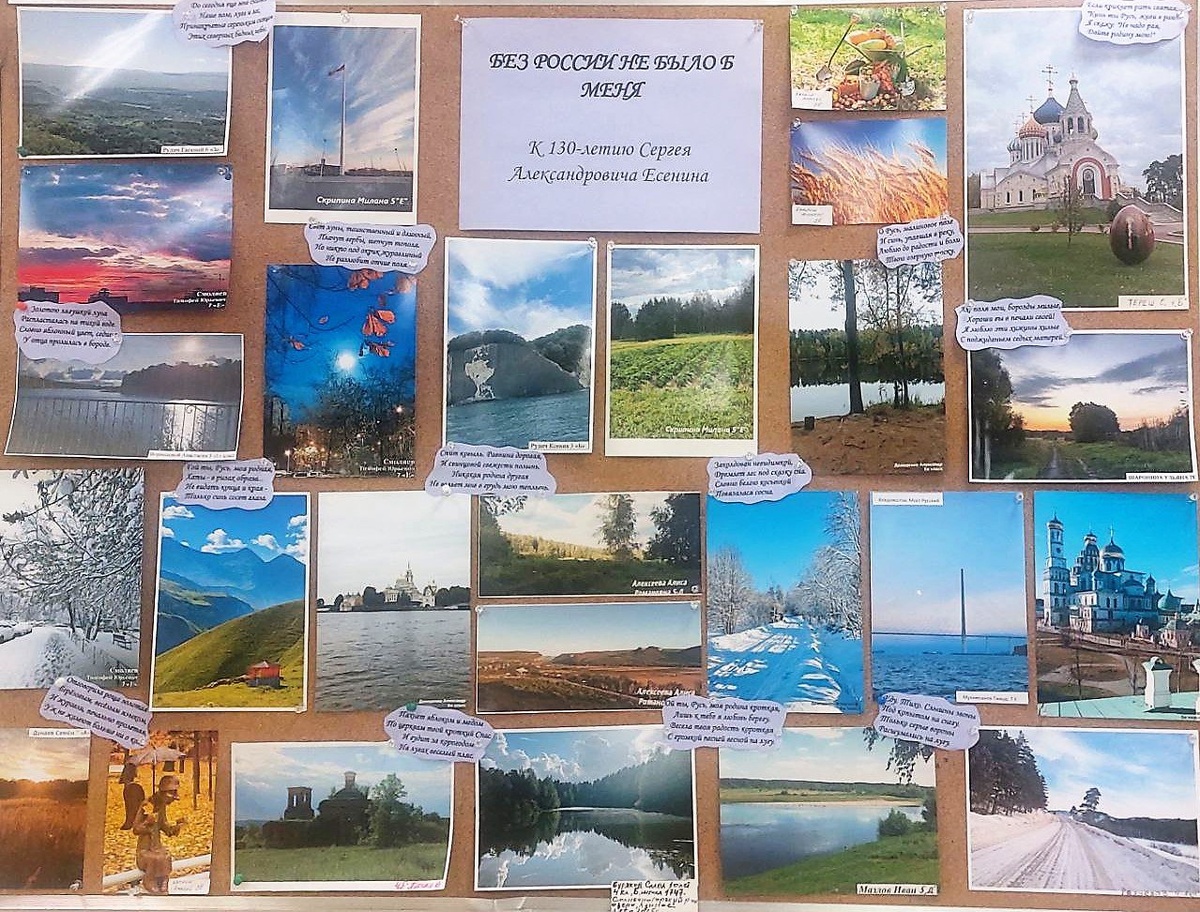 "Гляну в поле, гляну в небо — И в полях и в небе рай. Снова тонет в копнах хлеба Незапаханный мой край" 🌾 Сергей Есенин Друзья! 🤗 Великий русский поэт Сергей Есенин в своих стихах неустанно воспевал красоту природы родной земли. Также и каждый из нас, живущий среди этих бескрайних полей, густых изумрудных лесов, бурных рек и тихих озер, чистой белизны берез и огненного убранства рябин, восхищается окружающим нас великолепием 🌲 А передать красоту, поделиться ей можно по-разному. И изящным словом и яркой палитрой красок на холсте и магией фотографии. Многие ребята, ученики школы №1747 отлично владеют этим искусством, ловят удачные моменты, запечатляют в кадре особенные ракурсы 👍 Увидеть их работы можно прямо в школе, ведь наши талантливые фотографы собрали их в выставку под названием: "Без России не было б меня..." А еще ребята разместили рядом с фотографиями свои любимые строки из стихов Сергея Есенина. Молодцы! ✔️ 💬"Всегда приятно видеть, как тонко чувствуют красоту наши дети