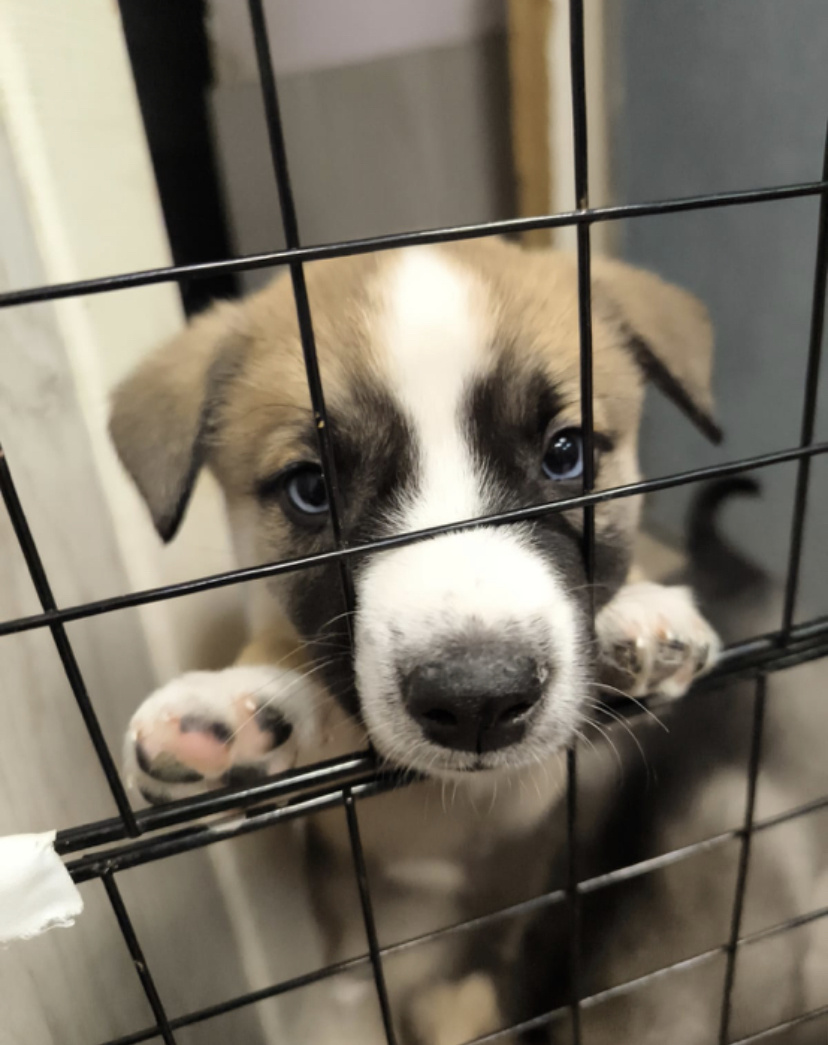Голубоглазый ребенок за решёткой приюта... Горько когда дети заточены за решёткой, ни в чем невинные и и с такими грустными глазами... Голубыми... Тим не хаски, хотя Конечно, в роду могли пробегать хаски и передать такой лазурный цвет глаз, а может это просто щенячий цвет и глаза станут карими, ведь Тимке всего 2 месяца, совсем дитё... Это неизвестно, но имеет ли это значение, когда они сияют так сейчас и так надеятся, что его спасут... По фото непонятно, но Тимка совсем маленький, еще помещается на ладошку. Добрый ласковый мальчик, светлый окрасом, с белой полосочкой на мордашке и небесными глазами. Он попал в приют всего несколько дней назад, прямо с улицы, как там оказался загадка, но явно не без вины людей... Тим очень умненький и смышленный, тянется к рукам, высовывает свой носик через прутья решетки, хочет на ручки... Здоров, по анализам чистый, уже обработан от клещей и глистов. Ладит с кошками и собаками, виляет хвостиком увидя ребенка, всей душой открыт человеку... Горько