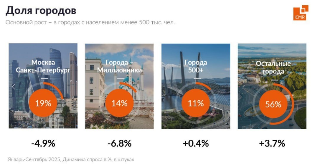 По данным исследовательской компании ICMR основной рост рынка БТиЭ приходится на города с населением до 500 тыс., в то время как столица и города-миллионники теряют доли. Небольшие города становятся точками роста (+3,7%) благодаря опережающему росту зарплат, развитию маркетплейсов и расширению логистики. Драйвером роста рынка БТиЭ в натуральном выражении остается категория МБТ, три четверти продаж которой приходится на онлайн канал. Современный потребитель становится более информированным и требовательным, а его покупки - более осознанными. Побеждать будут те бренды и ритейлеры, которые смогут предложить: инновации и умные функции, учет трендов на здоровье, экологию и персональный уход. 📱 Новости рынка БТиЭ | Оставляйте «бусты»