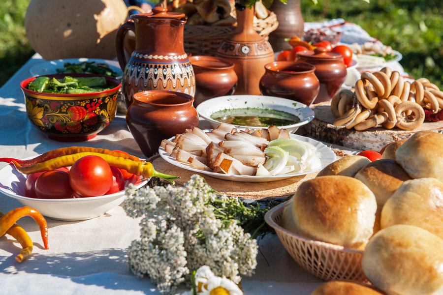 Русская кухня — это одна из древнейших и богатейших национальных кухонь мира, история которой насчитывает более тысячи лет. Её традиции формировались на основе природных ресурсов России и разнообразных культурных влияний. Славяне из глубокой древности использовали в своем питании крупы, овощи, мясо, рыбу, ягоды и грибы, которые сегодня составляют основу исконно русских блюд. Появление новых продуктов, например картофеля при Петре I, лишь обогатило кулинарный арсенал, но основные блюда, такие как щи, борщ и пироги, имеют корни в старинных традициях. Основу русской кухни составляют супы и первые блюда. Щи — традиционный капустный суп, известный с IX века, который готовят из мяса, капусты, моркови, лука и томатной пасты. Борщ, родившийся, вероятно, на территории Киевской Руси, сочетает в себе свеклу, капусту и мясной бульон с тушеными овощами. Рассольник готовят с мясом, перловкой и солеными огурцами, а солянка славится мясным ассорти с огурцами, маслинами и лимоном. Уха — прозрачный ры