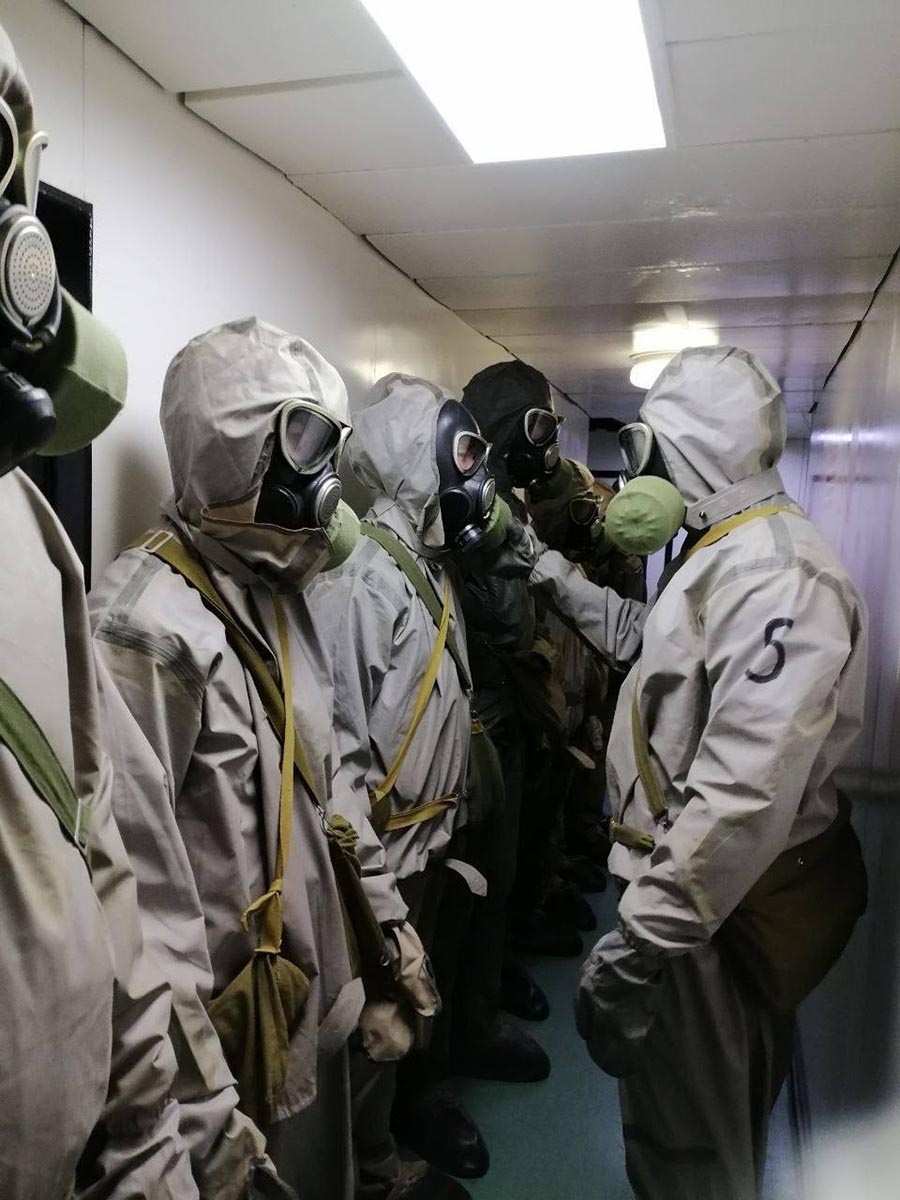 Служба РХБ защиты всегда работает на шаг вперёд. В идеале её работа как раз и заключается в том, чтобы не допустить ситуации, когда придётся действовать по факту аварии или атаки. Поэтому на корабле регулярно проводятся учения и тренировки, в ходе которых отрабатываются различные сценарии: от условной химической угрозы до применения оружия массового поражения.