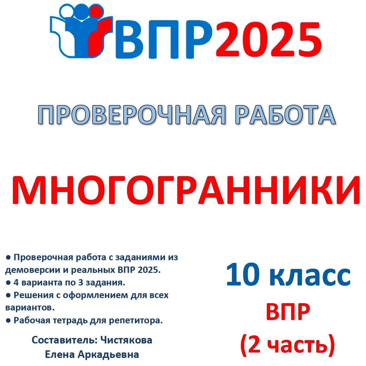 ❗Внимание❗⭐Новинка⭐🆗ВПР 10 класс Математика Проверочная работа "Многогранники" 📥 Скачать на WB: digital.wildberries.ru/offer/599077 Составлены из всех заданий демо-версии и реальных вариантов 2025 года , которые нам удалось найти по данной теме. 3 файла PDF: 🔹файл для учителя (4 варианта по 3 задания, 1 страница); 🔹файл с подробными решениями для всех вариантов, критерии оценивали (4 страницы); 🔹файл репетитору для двух вариантов со свободным местом для записи решения (4 страницы). Эти задачи могут решить ученики 10 класса, изучившие темы "Многогранники". 📚 Все материалы в таблице: vk.cc/cHlmAx Открывайте вкладку с нужным классом.