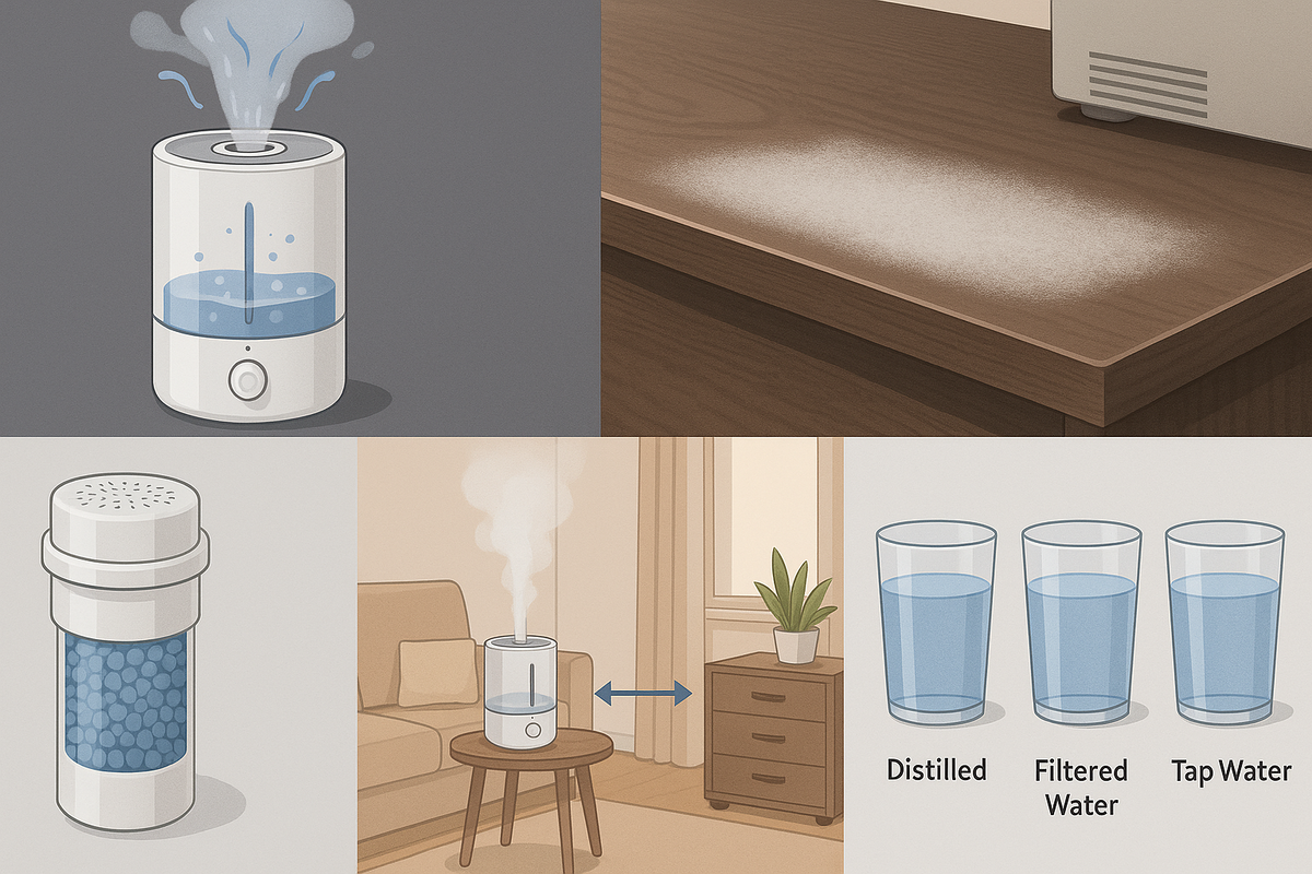 Увлажнители давно стали стандартом в офисах и квартирах, особенно в сезон отопления, когда воздух «деревенеет» и падает комфорт по всем фронтам: сохнет кожа, першит горло, чувствительнее становятся глаза и техника собирает больше пыли. Но при использовании увлажнителей воздуха некоторые пользователи сталкиваются с побочным эффектом — белым налётом на поверхности мебели и бытовых приборов. Разбираемся, откуда берётся эта «мука», почему она появляется не у всех и что нужно сделать, чтобы уже на старте исключить её появление. Белый налёт — это осевшие минеральные соли, которые содержатся в воде. Ультразвуковые увлажнители распыляют воду в виде холодного тумана, и если вода жёсткая, то после её испарения остаются микрочастицы кальция и магния. Они и оседают на мебели, создавая оттенок «муки» или белой пыли. Чаще всего виновником выступает именно ультразвуковая технология, поскольку: Тут всё зависит от входных данных: Более жёсткая вода = больше солей = более выраженный налёт.
