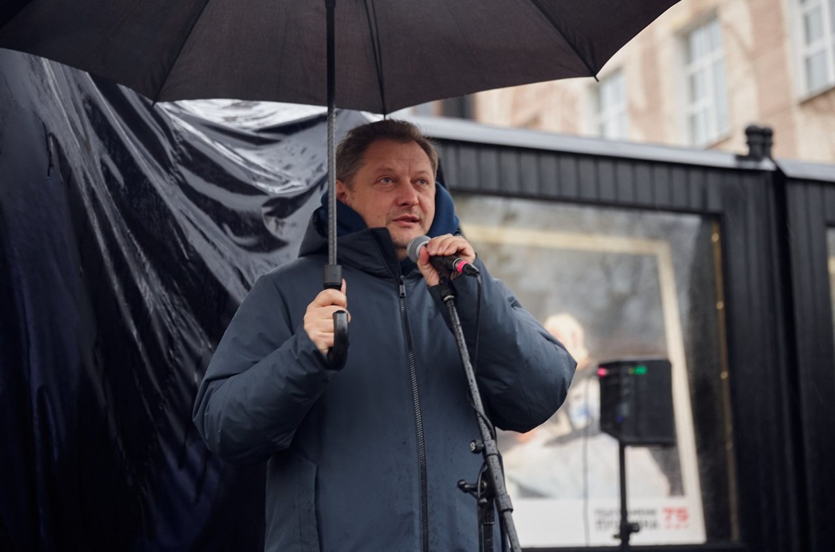 Скульптурную композицию открыли художественный руководитель Театра Пушкина Евгений Писарев и директор Театра Пушкина Владимир Жуков.