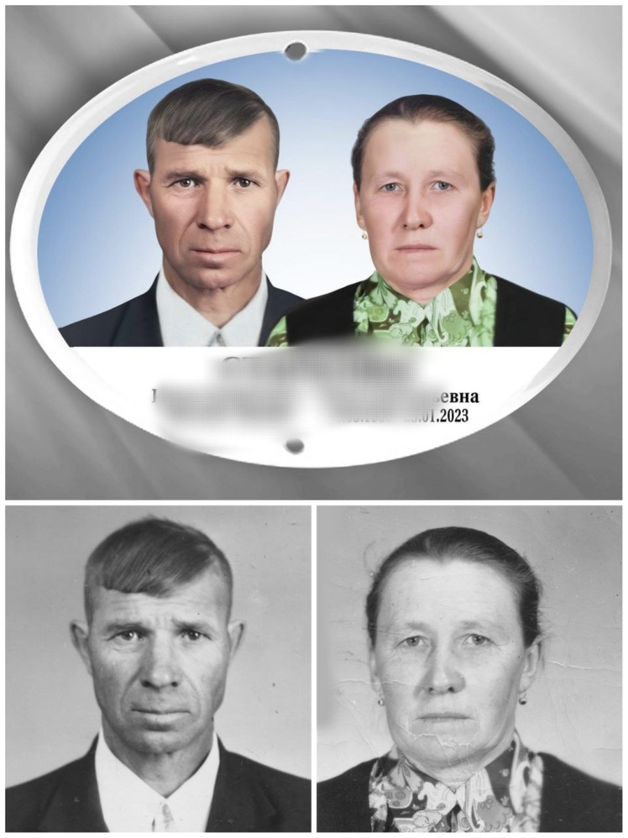 Можно ли совместить на одном медальоне лица с разных фотографий? Конечно, можно! Не всегда в семейном альбоме можно найти удачное совместное фото, или же один из родных умер гораздо раньше , чем второй. Общих снимков может не быть и вовсе. При помощи современных технологий две фотографии легко соединяются в совместное семейное фото. Фон и одежда заменяется на желаемую. После одобрения эскиза заказчиком, композиция переносится на металлокерамику или керамогранит.
