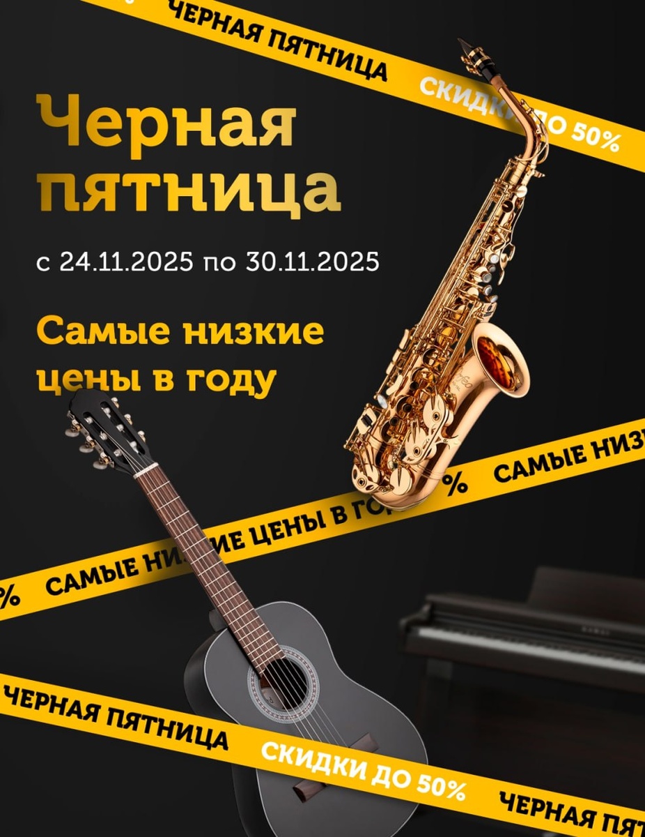 Чёрная пятница в «Глинки.ру» — самые низкие цены года! Тот самый момент, когда мечты сбываются! Чёрная пятница в «Глинки.ру» — ваша единственная возможность в году купить: •Тот самый саксофон, о котором давно грезили •Идеальный синтезатор для творчества •Легендарную гитару и все необходимые аксессуары Успейте с 24 по 30 ноября! Заходите на сайт, добавляйте в корзину всё нужное, а в дни распродажи выкупайте по суперценам! Торопитесь — количество товаров ограничено! ➡️Выбирайте инструменты мечты здесь.
