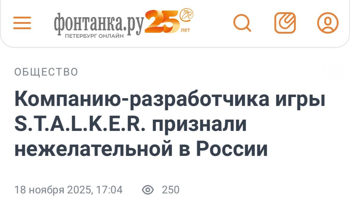 S.T.A.L.K.E.R. могут ЗАПРЕТИТЬ в России — GSC Game World официально признали нежелательной организацией. Это значит, что распространять материалы компании НЕЛЬЗЯ. В противном случае грозит административка и даже УГОЛОВКА. Ждём официально запрета через 3... CtrlAltDelights- подписаться