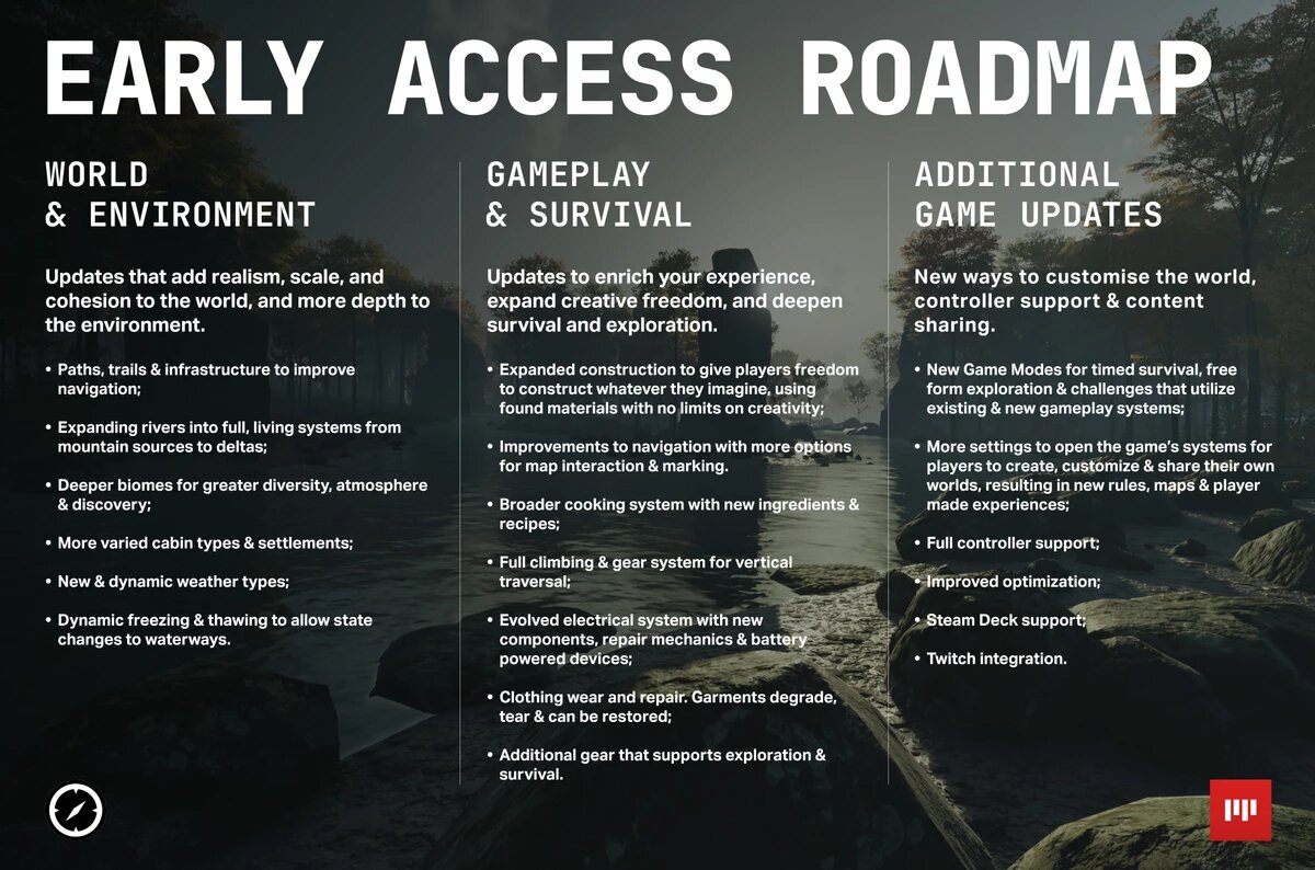 Студия Playerunknown Productions представила roadmap обновлений для выживальной игры Prologue: Go Wayback!, которая уже 20 ноября выйдет в раннем доступе. Команда обозначила три ключевых направления развития проекта, на которых сосредоточится в ближайшее время. https://www.youtube.com/watch?v=zuQvsF_qovw Первое и одно из важнейших направлений — углубление и расширение игрового мира. Разработчики намерены наполнить окружение реалистичными деталями, чтобы сделать его по‑настоящему живым и многогранным. В планах — добавление новых маршрутов и инфраструктурных объектов, которые улучшат навигацию и позволят игрокам лучше ориентироваться в пространстве. Особого внимания заслуживают природные элементы: реки получат усовершенствованную механику, а биомы — уникальную атмосферу. Кроме того, в мире появятся самобытные поселения и динамическая система погоды, которая будет влиять на восприятие окружения. Второе направление касается развития игрового процесса. Авторы планируют существенно расширить