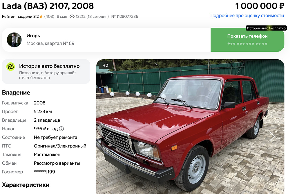 Легендарный ВАЗ-2107 продолжает удивлять автомобильный рынок России, демонстрируя необыкновенный диапазон цен в зависимости от состояния. Если большинство «семерок» на вторичном рынке сохраняют доступность благодаря простой конструкции и недорогому ремонту, то отдельные экземпляры претендуют на статус коллекционных раритетов. Ярким примером стала уникальная модель 2008 года, обнаруженная в Москве, которая благодаря феноменальной сохранности оценивается в 1 000 000 рублей. Читать на сайте: В Москве продают почти новый ВАЗ-2107 2008 года с пробегом 5 тысяч км и ярким красным цветом Этот ВАЗ-2107 красного цвета представляет собой настоящую «капсулу времени» — при общем пробеге всего 5233 километра автомобиль сохранил все оригинальные характеристики. Особое внимание специалисты уделяют идеальному состоянию днища и кузовных элементов, что свидетельствует о правильных условиях хранения и минимальной эксплуатации. Даже на стеклах остались заводские штампы ОТК, подтверждающие подлинность всех