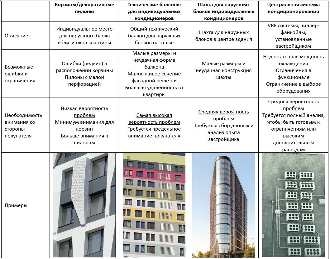 Чек-лист № 1. Жилые комплексы с корзинами или декоративными пилонами для размещения наружных блоков
