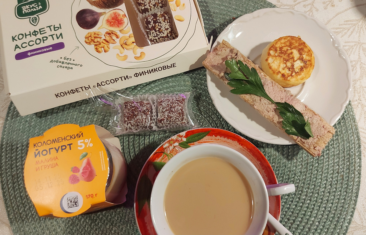 Всем привет! Всем привет! Вчера уснула в районе 10 вечера. Вырубилась быстро, но с утра всё равно вставать было тяжело. Завтрак у меня был скромный, что-то более сытное запихнуть в себя не смогла. Когда в сентябре рассветало рано, то я могла себе сделать скрэмбл или овсяноблин. Сейчас ленюсь, жалко на это времени, лучше ещё позволить себе немного поваляться в тёплой постельке. Вообще, когда с годами приходит желание любить себя — это совершенно нормально. Ты и работу выбираешь себе уже более комфортную и личные границы совсем по-другому выставляешь, чем в молодости. И если раньше твою доброту принимали за слабость, то теперь ты всё чаще учишься говорить "нет" — даже, если это твои собственные дети. Здоровый эгоизм (в разумных пределах) всегда запускает правильные механизмы восприятия тебя, как личности. Учиться себя любить — это тоже искусство и начать это делать никогда не поздно. После работы я пошла в ателье забрать свои брюки, прогулялась по магазинам и зашла в Буше перекусить