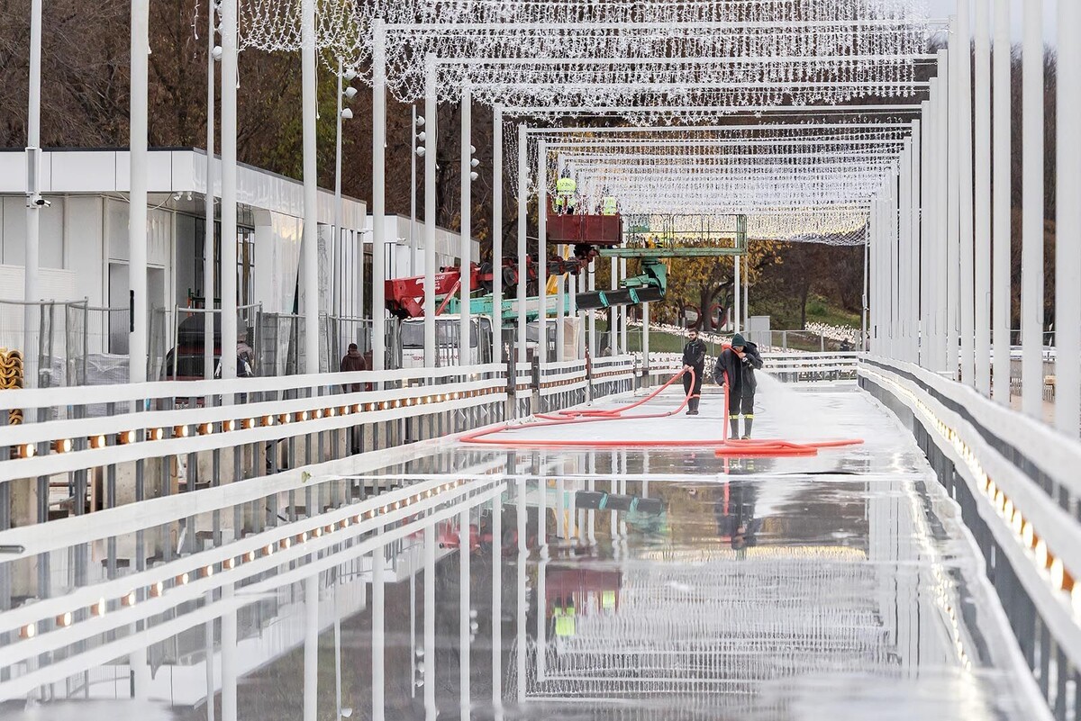 Один из самых больших столичных катков заливают вдоль набережной Москвы-реки в музее-заповеднике «Коломенское». Об этом сообщается на официальном сайте мэра Москвы. Новый каток в музее-заповеднике «Коломенское» представляет собой линейную трассу с искусственным льдом протяженностью 1,7 км. Она начинается у Голосова оврага и проходит в сторону южной части набережной. Специалисты уже подвели инженерные коммуникации, установили бортовое ограждение и опоры, между которыми закрепляют гирлянду. Они заморозили черновой 10-сантиметровый слой льда и сейчас наносят выравнивающее покрытие. Как рассказал начальник отдела Департамента капитального ремонта города Москвы Павел Наумов, при благоустройстве набережной заложили подземные инженерные коммуникации, которые обеспечивают работу десяти холодильных установок. Затем подготовили основание для катка. Потом заморозили первый черновой (технический, или промежуточный) слой льда, уложили геотекстиль, а сверху — второй черновой слой. Общая протяженност