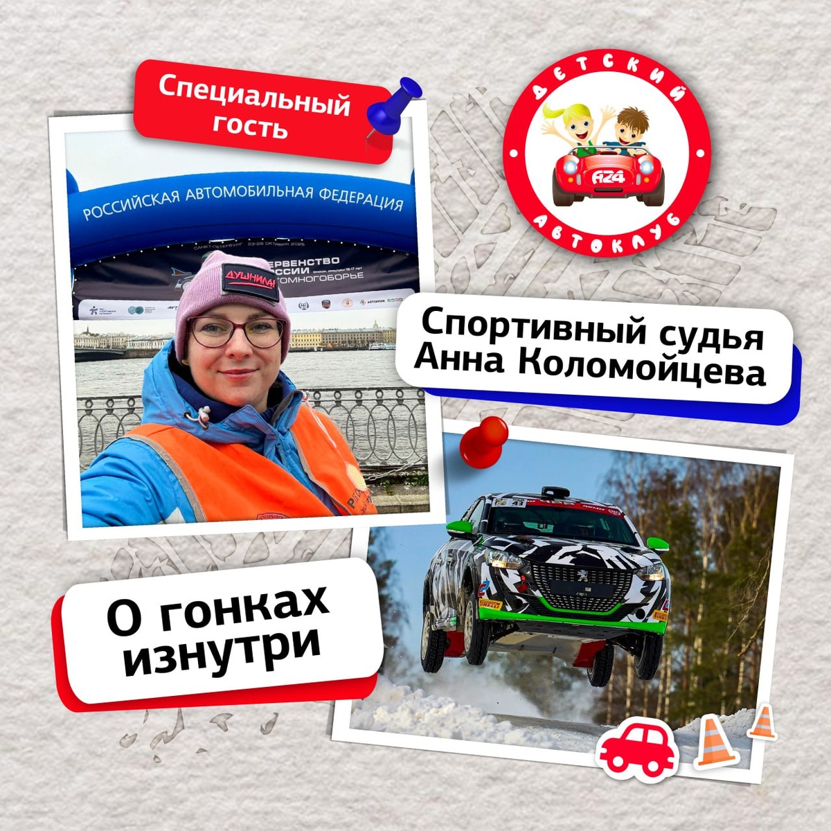 Загляните за кулисы автоспорта Интересуетесь автоспортом или хотите узнать о нем больше — Детский Автоклуб дарит такую возможность. 22 ноября вас ждет специальный гость —спортивный судья Анна Коломойцева. Это уникальный шанс для вас и ваших детей из первых уст узнать: 👉 Как на самом деле устроены соревнования. 👉 Чем занимается судья на трассе. 👉 Какие невероятные истории происходят с участниками. Анна с радостью ответит на вопросы и поделится сюжетами из мира автоспорта. 📅 Ждем вас 22 ноября в 11:00 и в 12:30 ❗️Запишитесь #ДетскийАвтоклуб #Спб #дети #авто #кстати