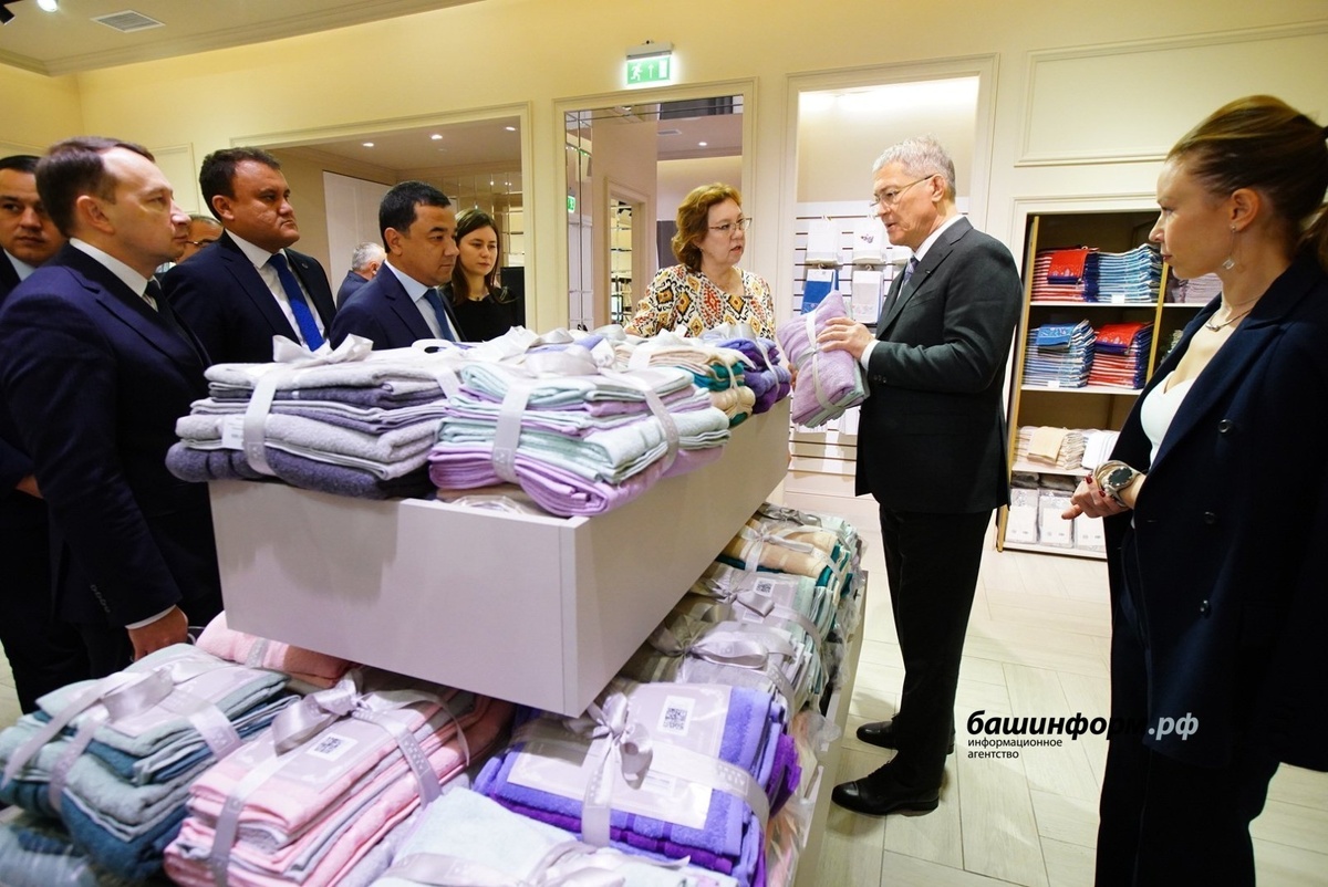 В Уфе открылся магазин узбекской текстильной компании Aisha Home Textile 18 ноября Глава Башкортостана Радий Хабиров и заместитель хокима Наманганской области Узбекистана Окибжон Инамов участвовали в открытии магазина узбекской текстильной продукции компании Aisha Home Textile в ТЦ «Мега». Aisha Home Textile — один из ведущих мировых экспортёров текстиля, специализирующийся на производстве махровых и вафельных изделий по индивидуальным заказам, таких как полотенца, халаты, покрывала и сауны. Заместитель хокима Наманганской области сообщил, что производственная мощность фабрики составляет 360 тонн в месяц, а годовой объём выпуска — 4320 тонн продукции. Более 80% изделий экспортируется в 16 стран. Радий Хабиров осмотрел ассортимент и обсудил возможности его расширения. Генеральный директор Aisha Home Textile Гульсэм Усаева сообщила, что в магазине также представлена продукция российского бренда Kadriya Home. Также Глава Башкортостана посетил магазин «Да Дому/Белорусский Лён» концерна «Бе