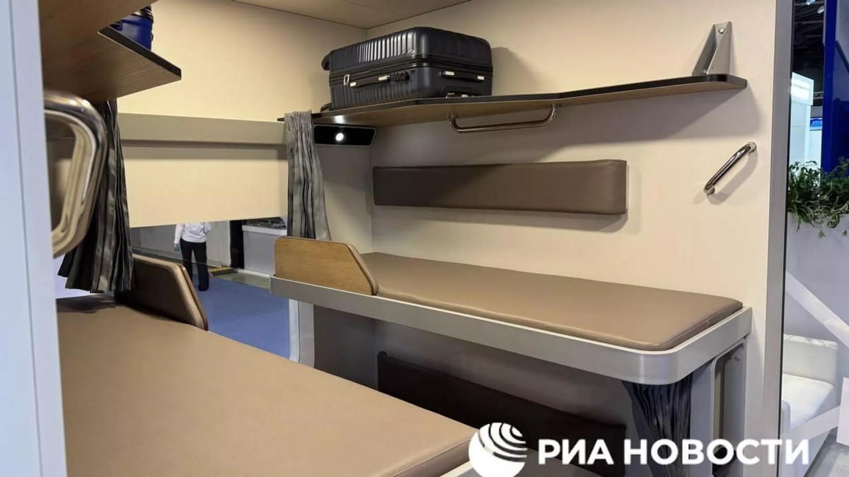 РЖД показали макет нового плацкарта с полками длиной почти 1,9 метра. Новый вагон так называемого габарита Т будет иметь больше пассажирских мест: 58 вместо стандартных 54. Каждое спальное место оборудовано шторками, предусмотрены столики для пассажиров верхних и нижних полок, персональные светильники, воздуховоды и розетки USB и 220 В. В новом плацкартном вагоне будут две санитарные комнаты и отдельная душевая кабина. РЖД в 2026 году ждут строительства плацкартного вагона с увеличенными габаритами, говорил летом текущего года заместитель гендиректора компании Иван Колесников.
