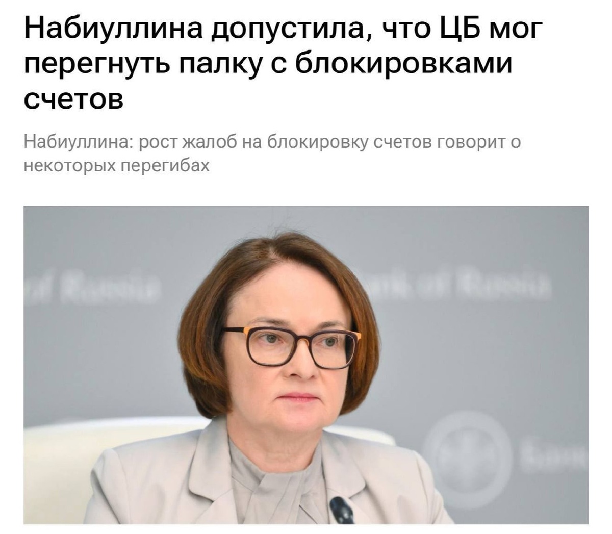 Глава Центробанка Эльвира Набиуллина признала наличие проблемы с необоснованной блокировкой банковских счетов граждан России