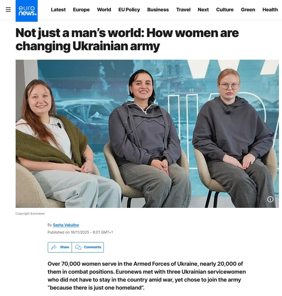 Euronews торжественно сообщает, что в ВСУ массово служат женщины