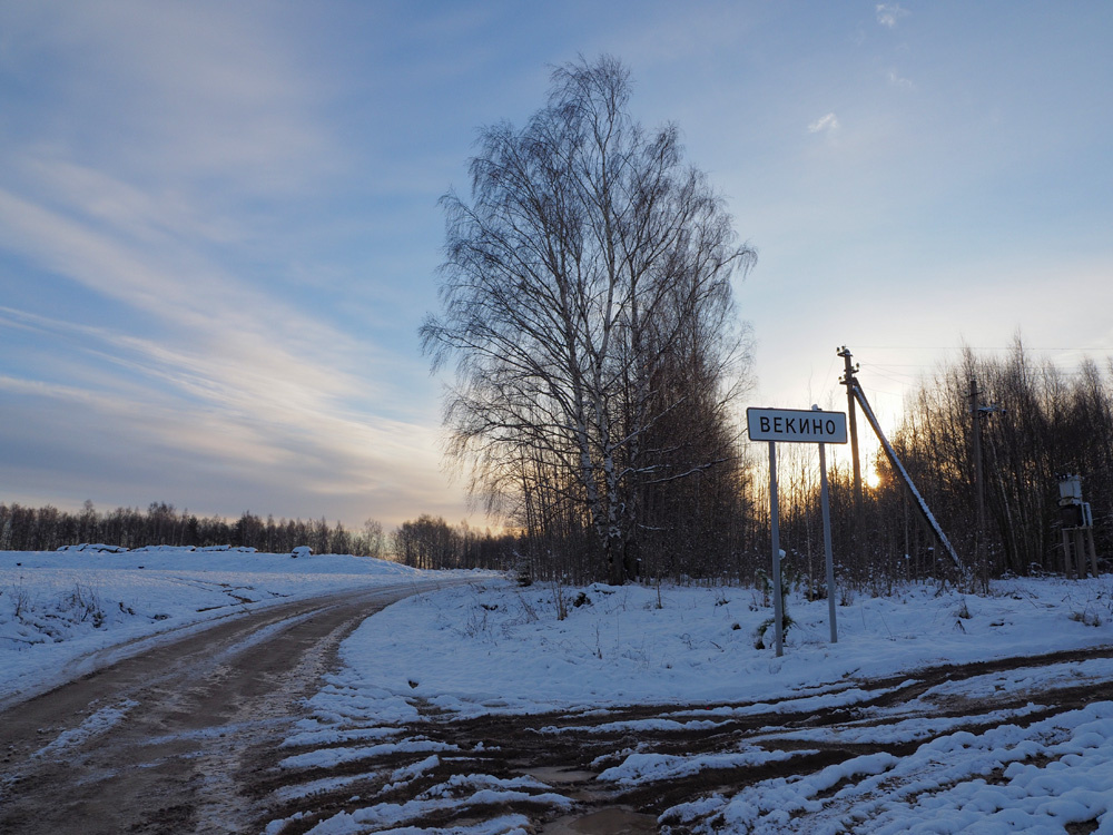 В середине ноября совершил вылазку на природу по первому снегу. Утренние сумерки и восход солнца встретил в окрестностях деревни Петрилово, о чем рассказал в первой части. А далее направился на Русалочьи озера, которые находятся у деревни Векино Шуйского района. Дорога к озерам идет как раз через эту деревню. Но я и так бы посетил Векино. Это весьма симпатичная деревня, при въезде в которую стоит старинная часовня Силуана Афонского, которую всегда фотографирую.
