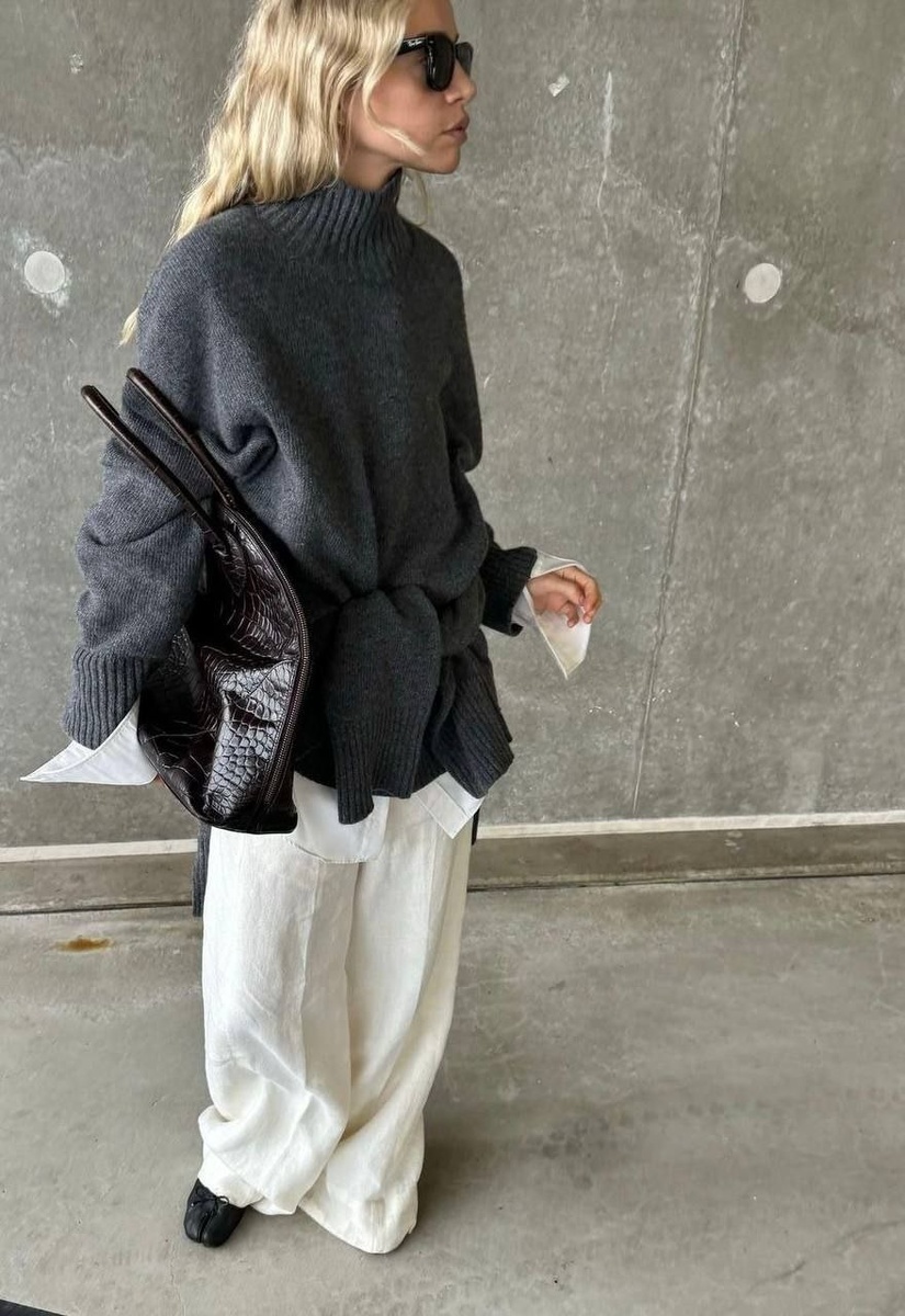 Базовый серый свитер выглядит настолько простым и обыденным, что кажется скучным выбором. Однако именно эта простота становится ключом к созданию элегантных и гармоничных образов. Его нейтральность позволяет акцентировать внимание на ярких аксессуарах и сложных тканях, подчеркивая их красоту, а не затмевая её. Универсальность кроя, изысканность оттенка и комфорт делают этот предмет гардероба незаменимым элементом стиля, способным поднять даже самый простой лук на новую высоту🧸