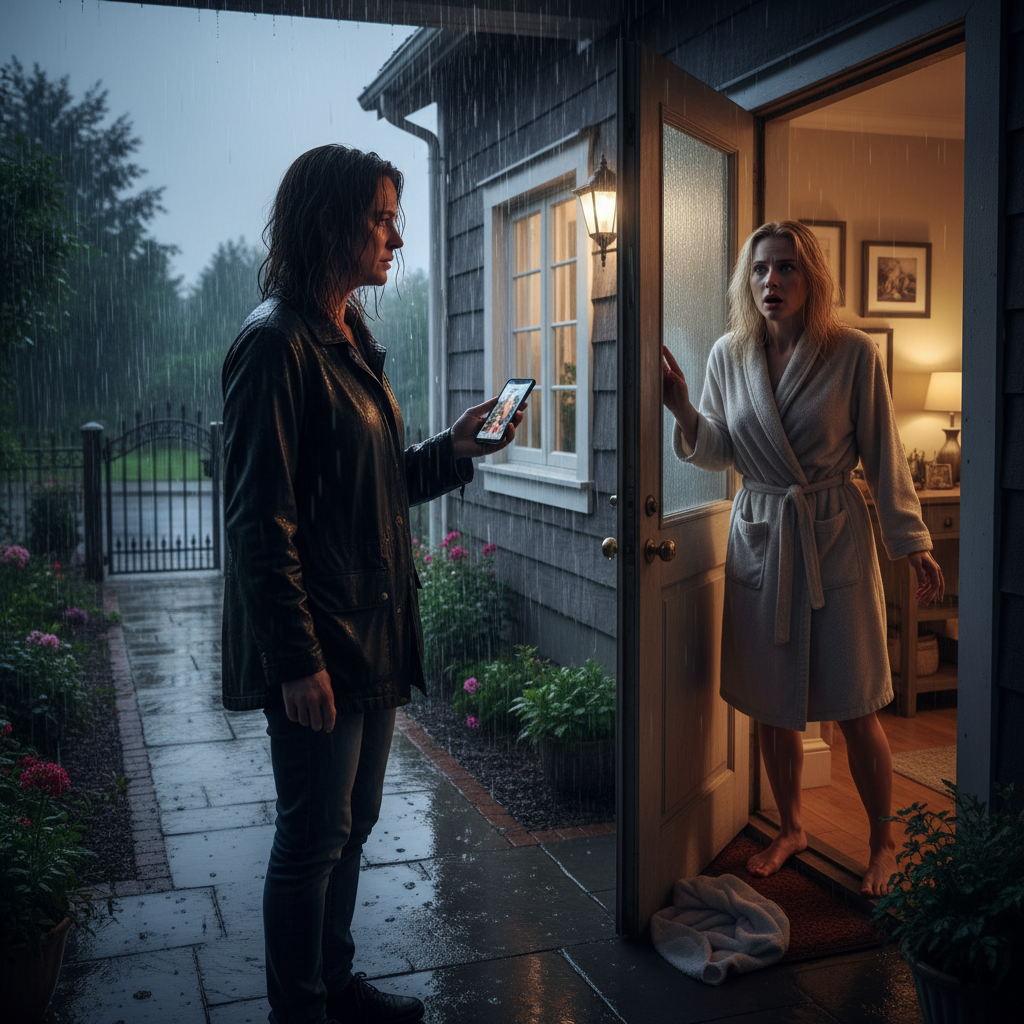 Послышались шаги. Дверь открылась. На пороге стояла та самая женщина с фотографий. Блондинка, в домашнем халате, с полотенцем в руках.