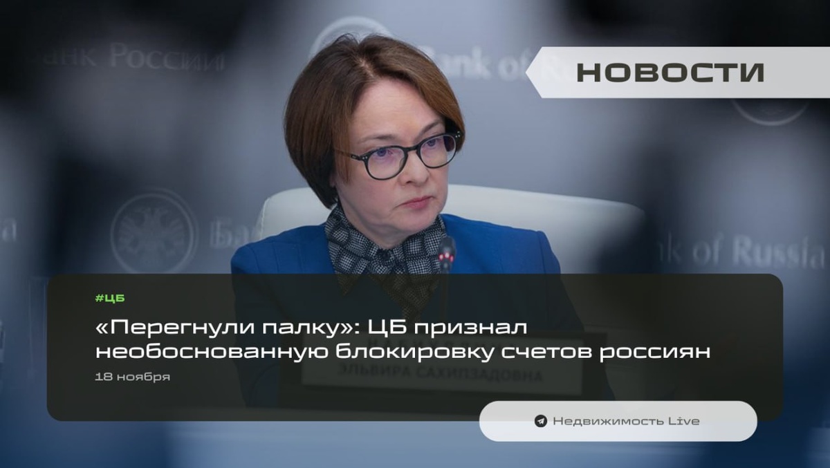 ⚡️ «Перегнули палку»: ЦБ признал необоснованную блокировку счетов россиян — с таким неожиданным заявлением выступила Эльвира Набиуллина на