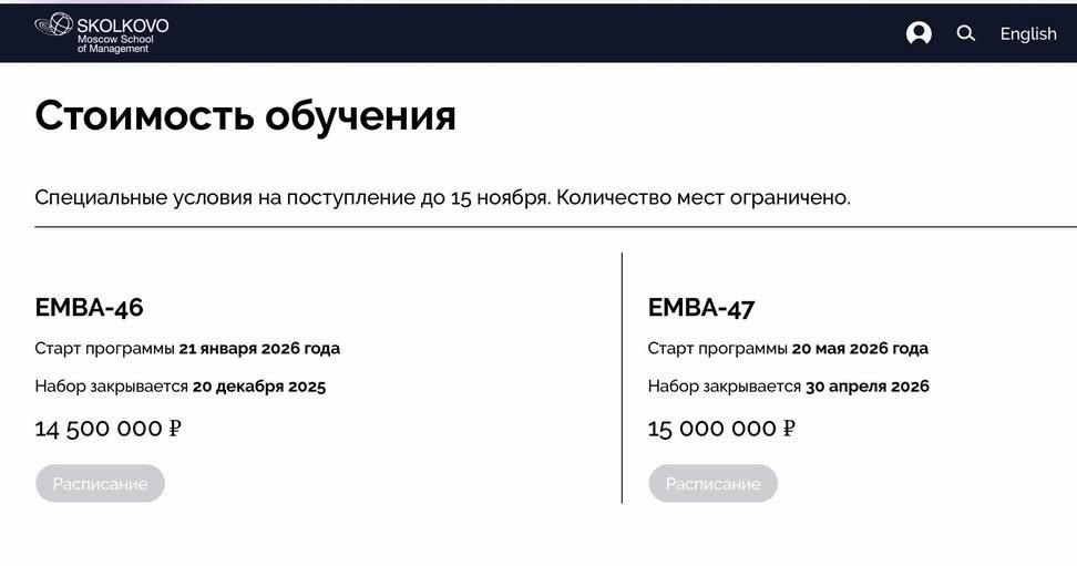 Просто стоимость обучения в бизнес школе Сколково. По спец цене 😂