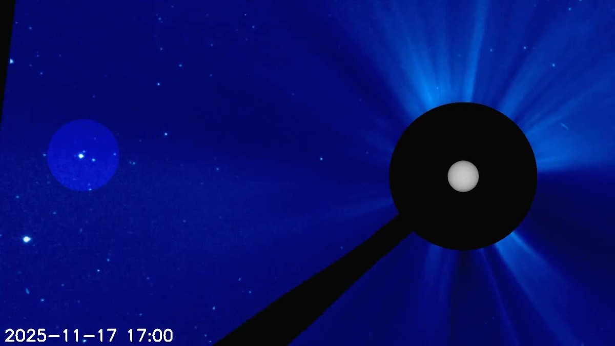 Астрономы получили снимки ретроградного Меркурия с коронографов LASCO. Приборам, изучающим пространство у Солнца, удалось запечатлеть обратное движение планеты на фоне звезд. Сейчас это - практически единственный способ увидеть данный необычный процесс: с Земли и через обычный космический телескоп посмотреть на Меркурий не получится из-за близости звезды, отмечает Лаборатория солнечной астрономии. Видео специалисты опубликовали во вторник, 18 ноября, на канале @lpixras в Telegram. Ретроградное движение Меркурия началось 9 ноября. В поле зрения LASCO планета оказалась в начале недели. Она будет наблюдаться приборами до самого воскресенья и пройдет за это время полный путь от левого до правого края поля зрения телескопа. После 29 ноября планета вернется к обычному движению по небесной сфере. Ретроградное движение — это естественное астрономическое явление. Как отмечают специалисты, в свое время оно свело с ума не одного средневекового астронома, так как конфликтовало с концепцией с Земле