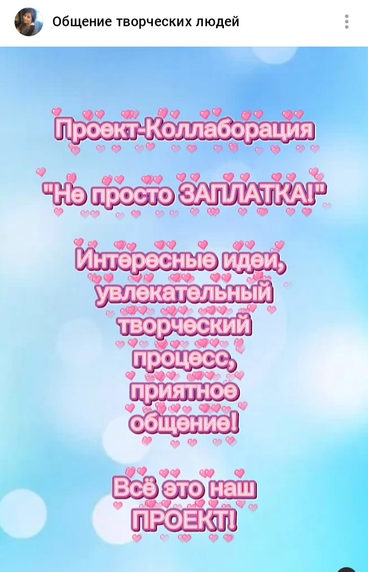В моём сообществе в ВК проходит Проект-Коллаборация "Не просто ЗАПЛАТКА! ". Ссылка на сообщество: Приходите посмотреть🤗 Участвуют блогеры и их ролики можно посмотреть перейдя по ссылкам, а также Зрители и их ролики можно увидеть у меня в сообществе Организатор Наталия Бобракова. "Общение творческих людей " https://vk.com/natalia_and_creativity #непростозаплатка Участники Блогеры Alex_MalKnits https://rutube.ru/channel/8047342 Елена. Рукоделие с утра до вечера https://rutube.ru/channel/23837199 WoolKat | Вязаная одежда https://m.vk.com/katya_yarn Олеся Панина https://rutube.ru/channel/24518954 Зрители Светлана. Московская область. Елена. Санкт-Петербург. Евгения. Казахстан.